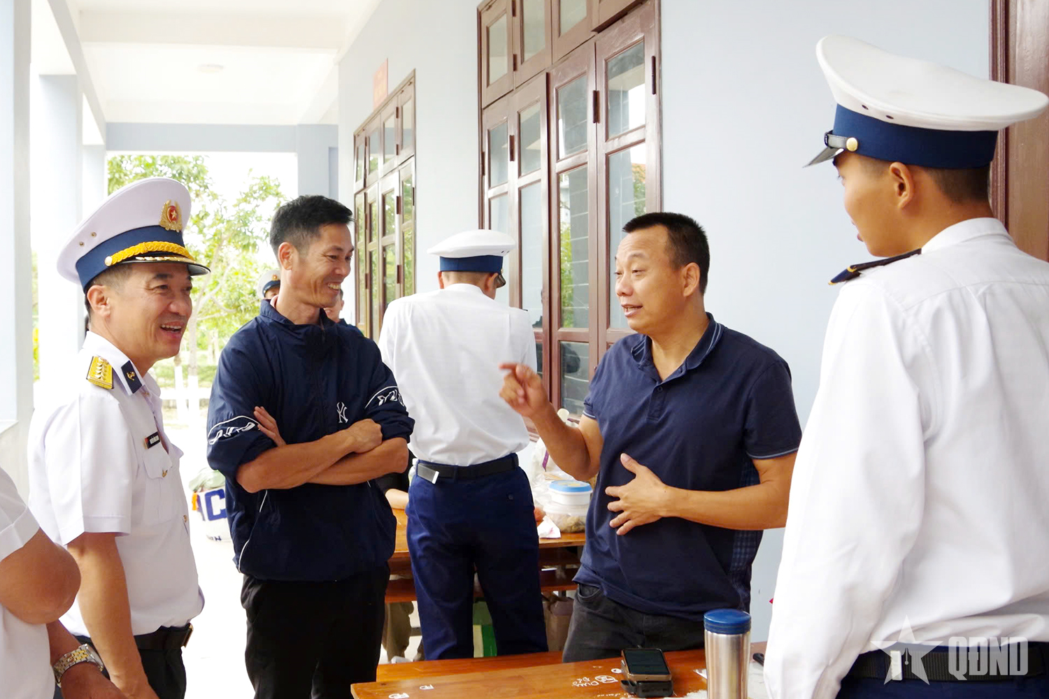 Đại tá Nguyễn Hồng Chinh, Chính ủy Trung tâm Huấn luyện Vùng 4 Hải quân (bên trái) thăm hỏi gia đình và quân nhân.