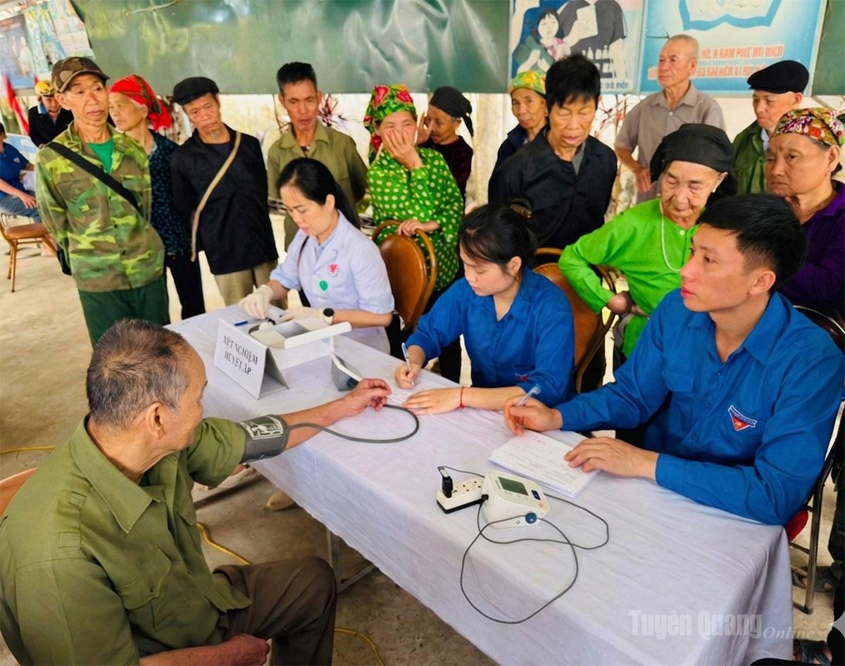 Đoàn xã Bạch Ngọc phối hợp các đơn vị khám bệnh, tư vấn sức khỏe và cấp phát thuốc miễn phí cho người cao tuổi.