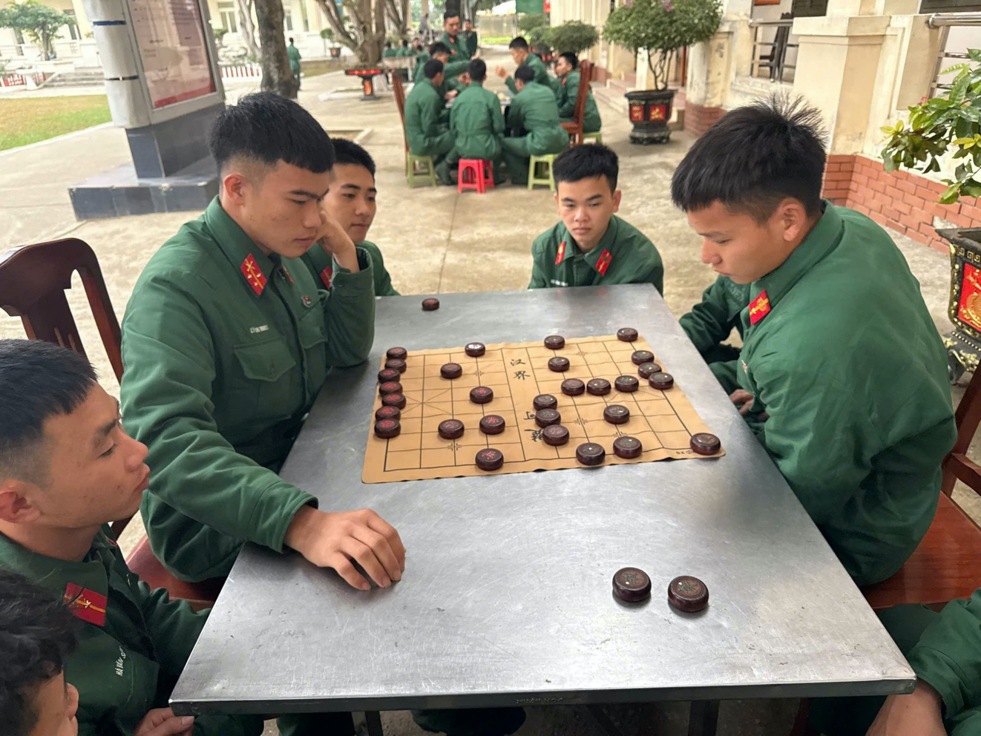 Chiến sĩ Tiểu đoàn 16 thi đấu cờ tướng.