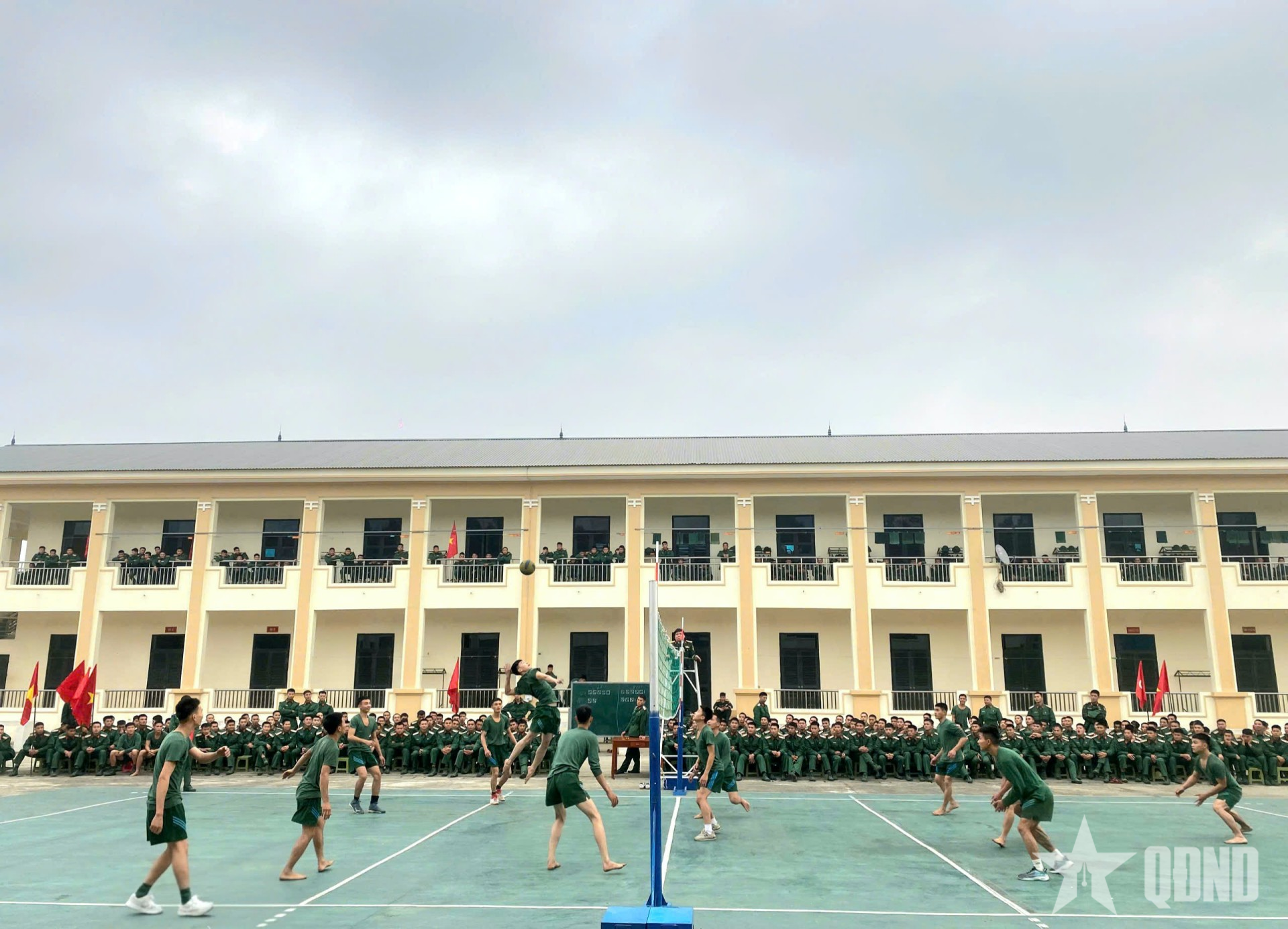 Cán bộ, chiến sĩ Trung đoàn 98 thi đấu bóng chuyền.