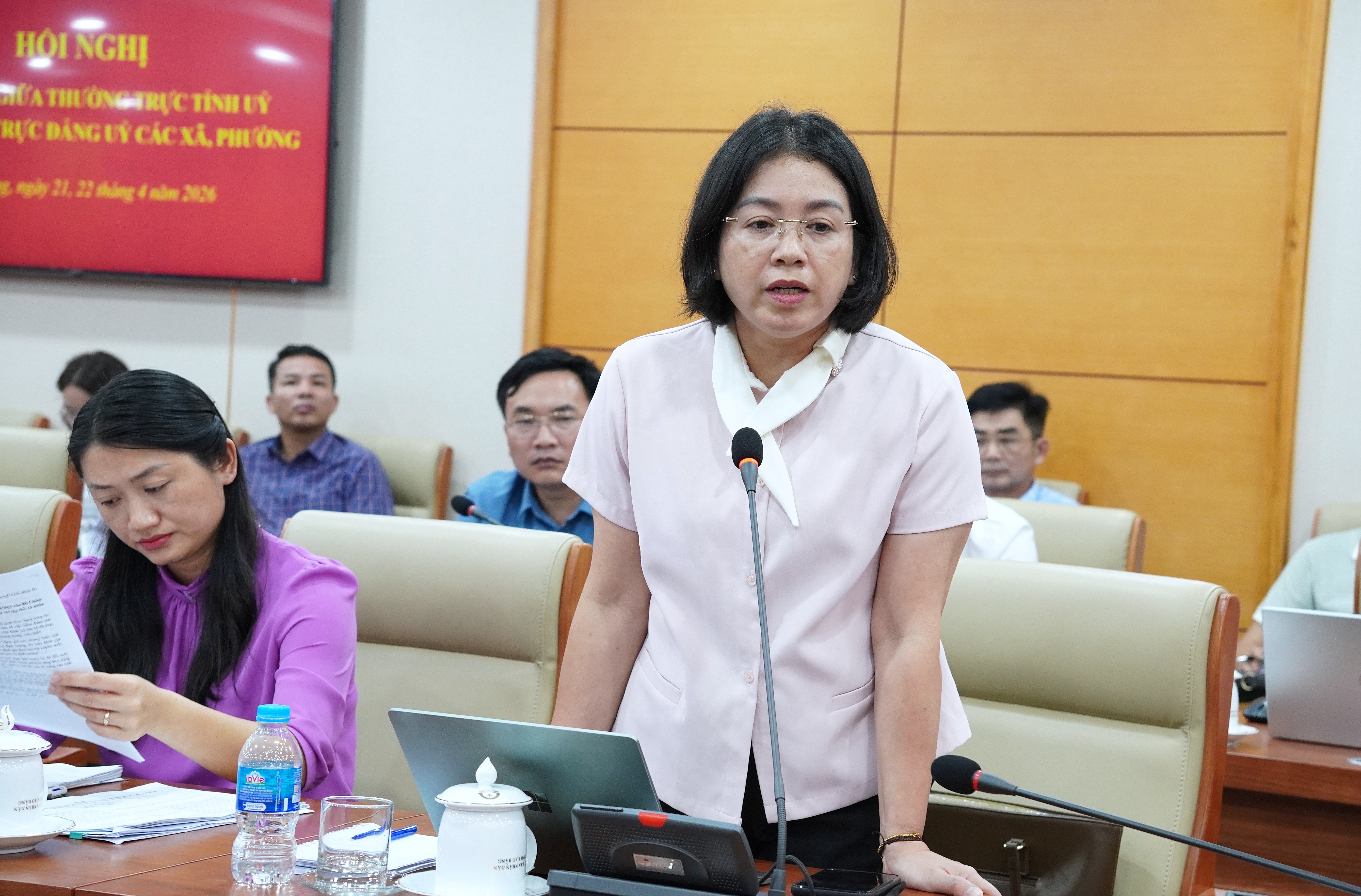Trên tinh thần dân chủ, thẳng thắn, trách nhiệm, các đại biểu nêu nhiều khó khăn, vướng mắc trong quá trình lãnh, chỉ đạo, triển khai thực hiện các mục tiêu phát triển kinh tế - xã hội, mục tiêu tăng trưởng 2 con số; tổ chức và hoạt động của chính quyền địa phương 2 cấp. Các đại biểu cho rằng, để đạt được mục tiêu tăng trưởng 2 con số cần có sự vào cuộc quyết liệt đồng bộ của cả hệ thống chính trị. Ngoài quyết tâm chính trị, các xã, phường cũng đang tích cực riển khai, lồng ghép các nguồn lực, tăng thu nhập bình quân đầu người. Đại diện cấp ủy các xã, phường kiến nghị tỉnh hỗ trợ nguồn vốn đầu tư xây dựng hạ tầng, đặc biệt là hạ tầng giao thông kết nối các xóm, xã sau sáp nhập và các công trình khắc phục hậu quả thiên tai, xóa các vùng lõm sóng điện thoại và chưa có điện lưới quốc gia để thực hiện tốt Nghị quyết 57 của Bộ Chính trị về đột phá phát triển khoa học, công nghệ, đổi mới sáng tạo, chuyển đổi số.