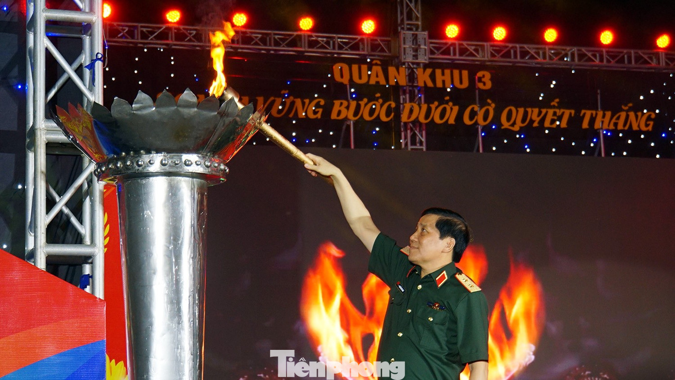 Trung tướng Nguyễn Đức Hưng – Chính ủy Quân khu 3 đã thực hiện nghi thức thắp sáng ngọn đuốc truyền thống, biểu tượng cho tinh thần bất khuất, lòng trung thành và khát vọng cống hiến của các thế hệ cán bộ, chiến sĩ quân khu.