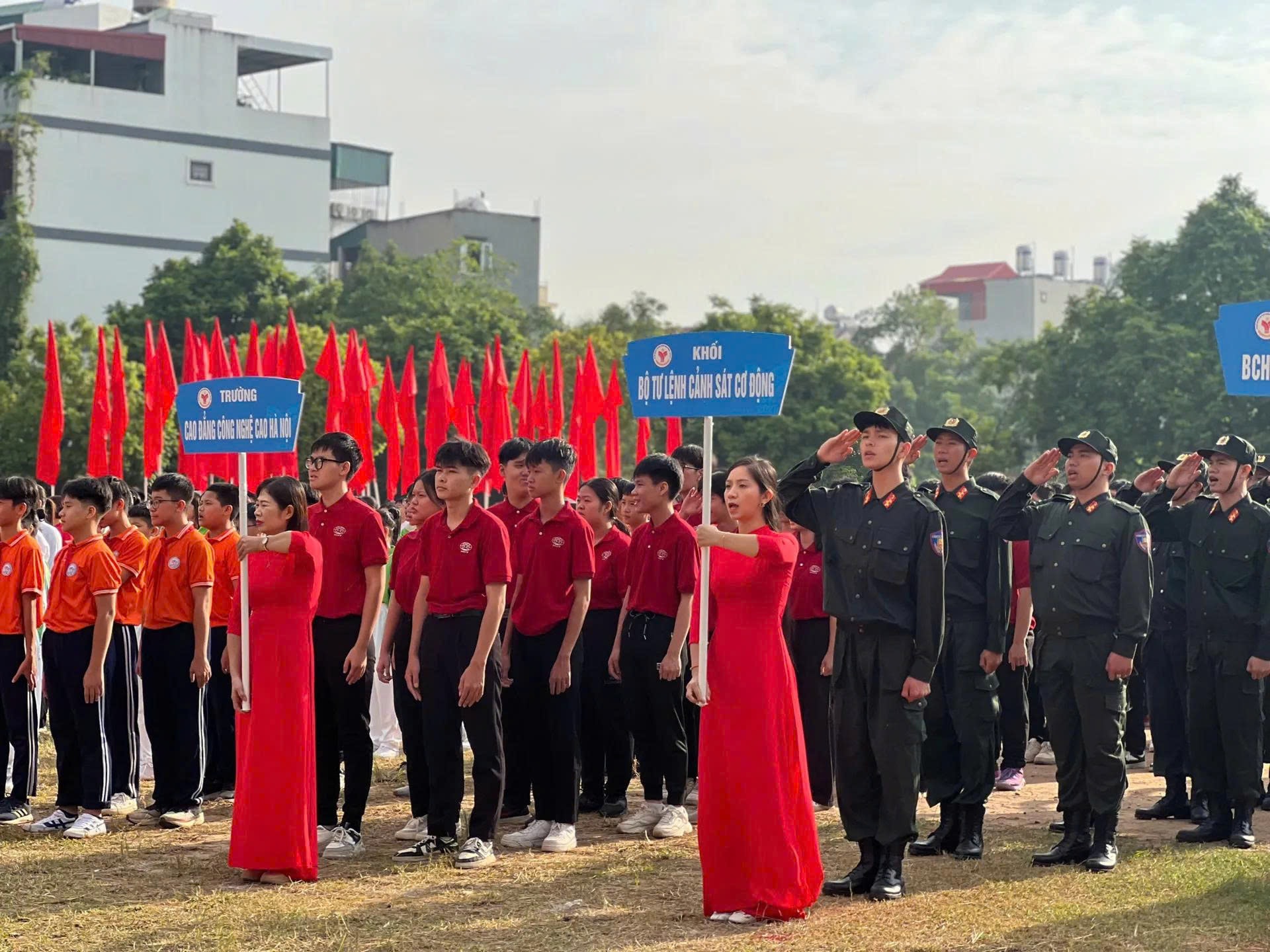Các lực lượng tham gia diễu hành tại đại hội. Ảnh Duy Kiên