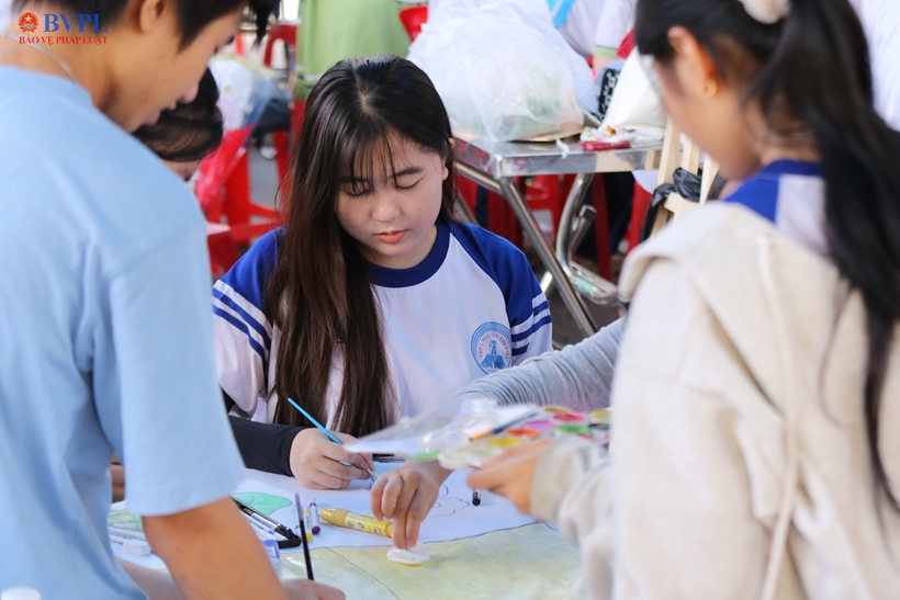 Phần thi tài vẽ tranh giữa các lớp - Ảnh Thiên Quảng