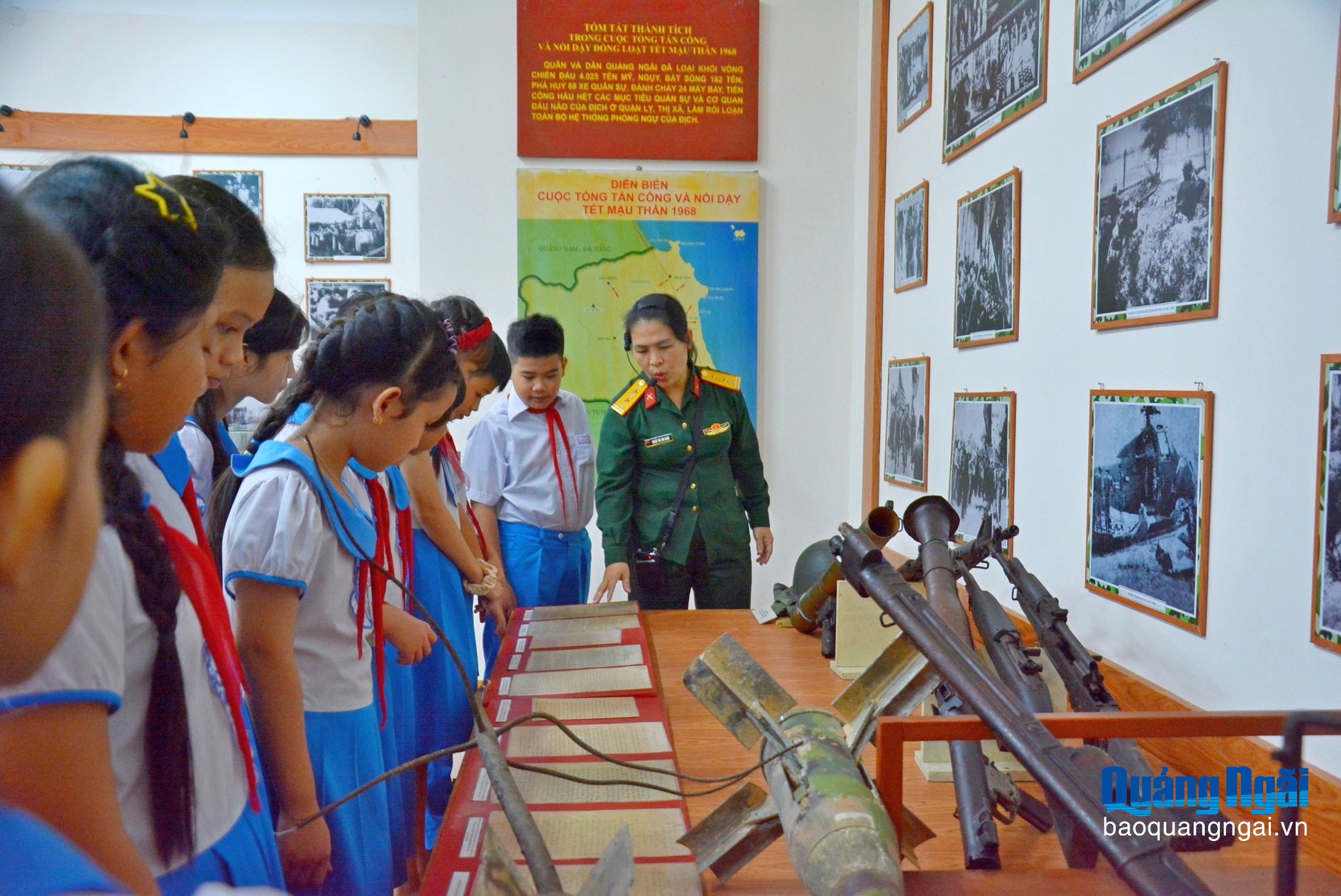 Học sinh trên địa bàn phường Cẩm Thành tham quan, tìm hiểu về lịch sử của Quân đội nhân dân Việt Nam tại Nhà truyền thống Lực lượng vũ trang tỉnh.