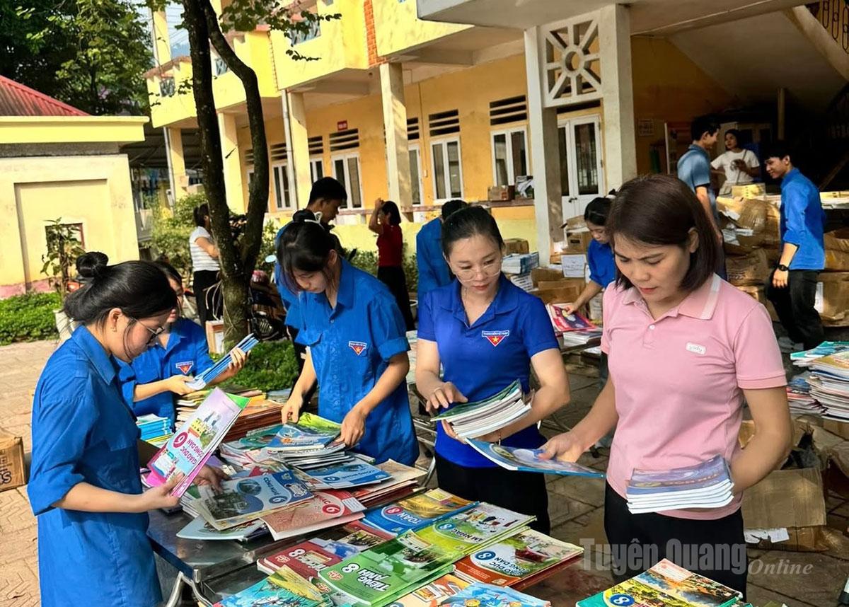 Đoàn, Hội LHTN xã Vị Xuyên tổ chức chương trình “Chợ sách 0 đồng – Sau bão lũ” tại trường THCS Lý Tự Trọng.