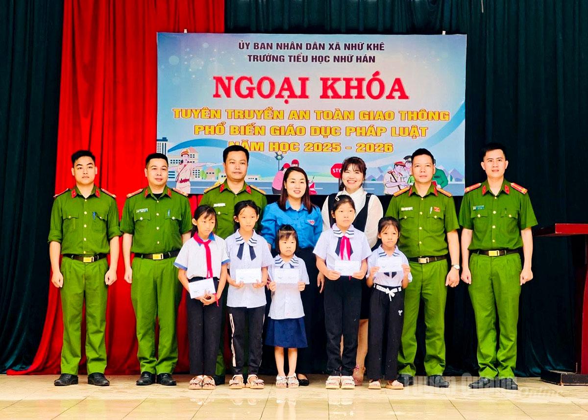 Đoàn xã Nhữ Khê phối hợp cùng Công an xã Nhữ Khê tổ chức các hoạt động ngoại khóa tuyên truyền pháp luật, tặng quà cho học sinh.