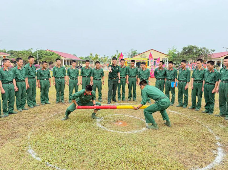 Tại Trung đoàn 335, Sư đoàn 324, ngay từ sáng sớm, sân đơn vị đã rộn ràng tiếng hò reo cổ vũ. Cán bộ, chiến sĩ hào hứng tham gia các trò chơi dân gian mang đậm bản sắc văn hóa truyền thống như đẩy gậy, ném còn, kéo co. Đây không chỉ là dịp để rèn luyện sức khỏe mà còn giúp bộ đội hiểu thêm về giá trị văn hóa dân tộc, tăng cường tinh thần đoàn kết, gắn bó trong đơn vị. Những trận kéo co quyết liệt, những pha đẩy gậy đầy kịch tính đã thu hút đông đảo cán bộ, chiến sĩ tham gia và cổ vũ, tạo nên bầu không khí sôi động, đầy ắp tiếng cười.