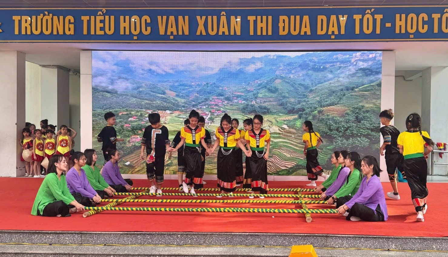 Trong khuôn khổ chương trình, cô và trò Trường Tiểu học Vạn Xuân đã tổ chức biểu diễn các tiết mục văn nghệ ca ngợi Đảng, Bác Hồ, tình yêu quê hương đất nước và mùa xuân yêu thương.