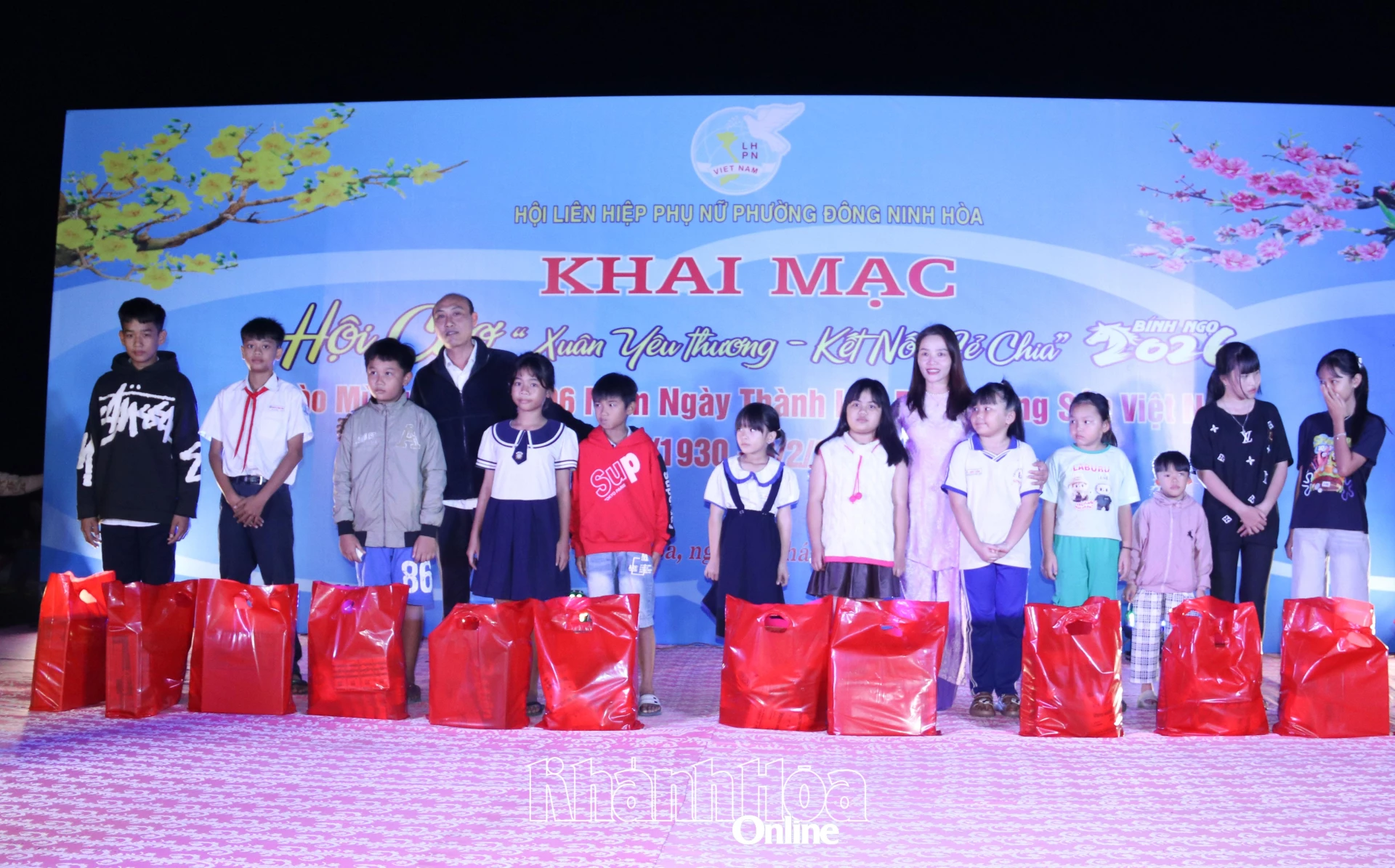 Lãnh đạo phường Đông Ninh Hòa và lãnh đạo Hội Liên hiệp Phụ nữ phường trao quà cho trẻ em mồ côi có hoàn cảnh khó khăn.