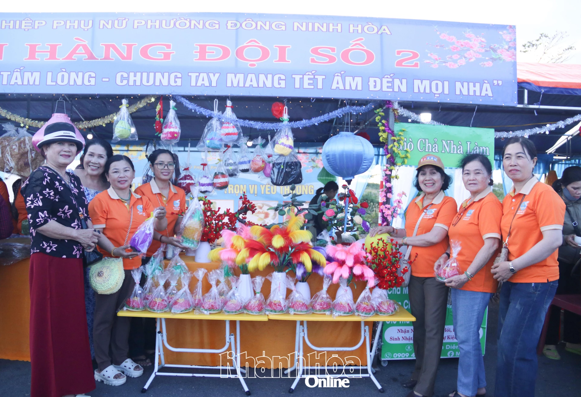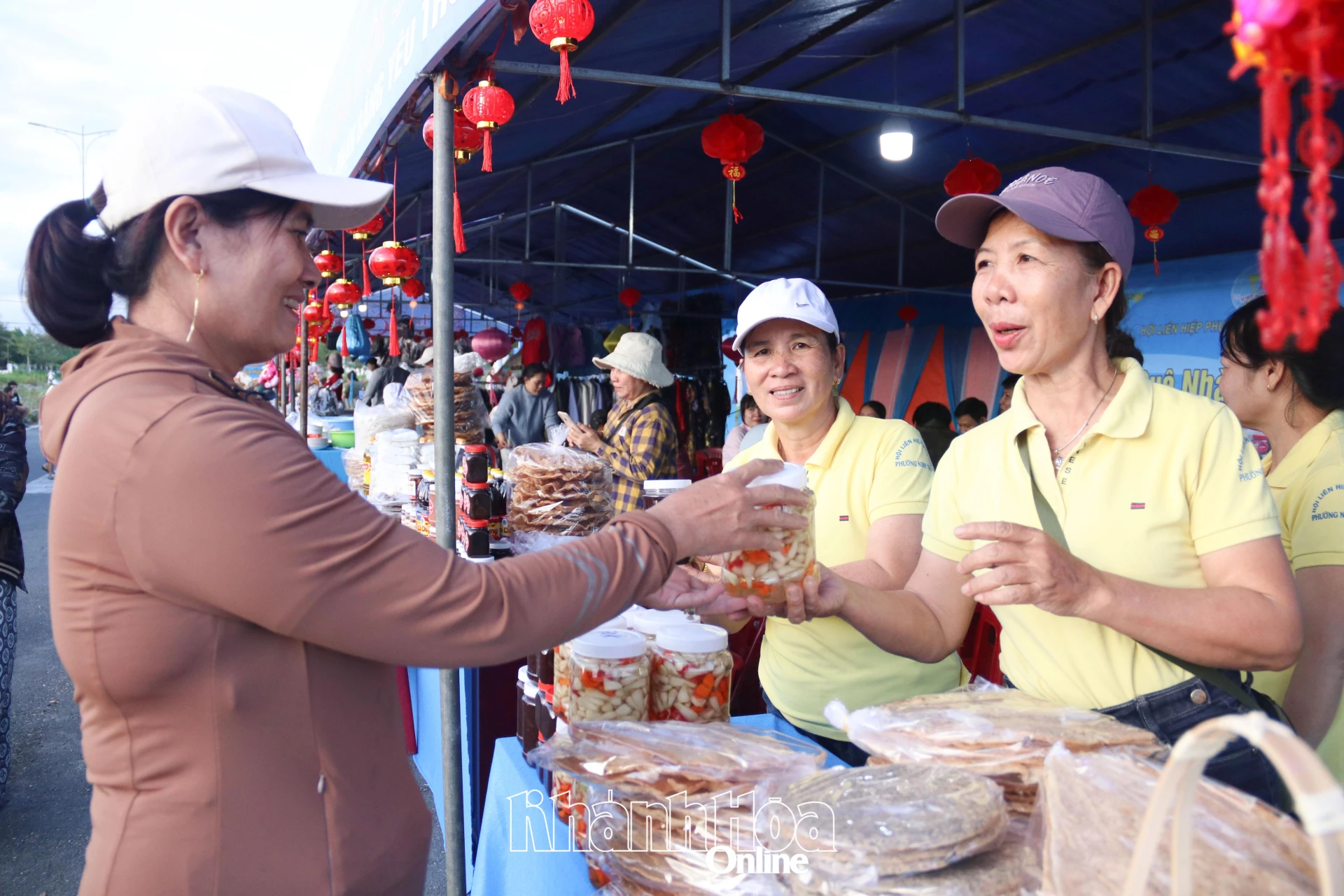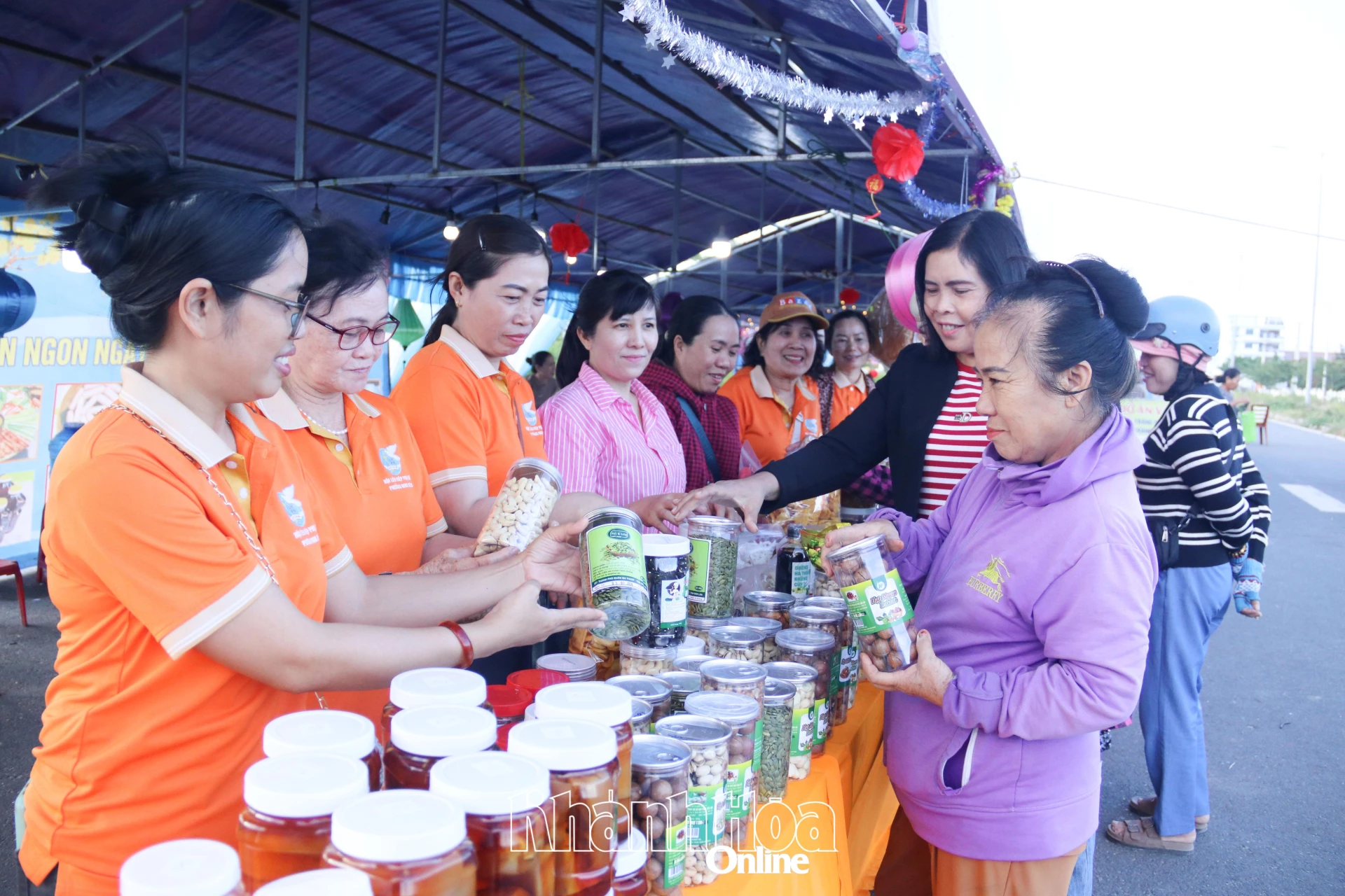 Hội chợ có 14 gian hàng, trong đó có 12 gian hàng do chi hội phụ nữ các tổ dân phố trên địa bàn phường trưng bày, giới thiệu và bán các sản phẩm như: Rong biển, bánh tráng, các loại mứt, kẹo, mắm, muối, măng khô, hành, tỏi, các sản phẩm trang trí Tết, sản phẩm thủ công mỹ nghệ; các món chè, nem, chả, bún cá, bánh canh… Không khí tại các gian hàng diễn ra sôi nổi, rộn ràng; các sản phẩm được bày bán phong phú, tạo nên không khí vui tươi, ấm áp, gắn kết cộng đồng.