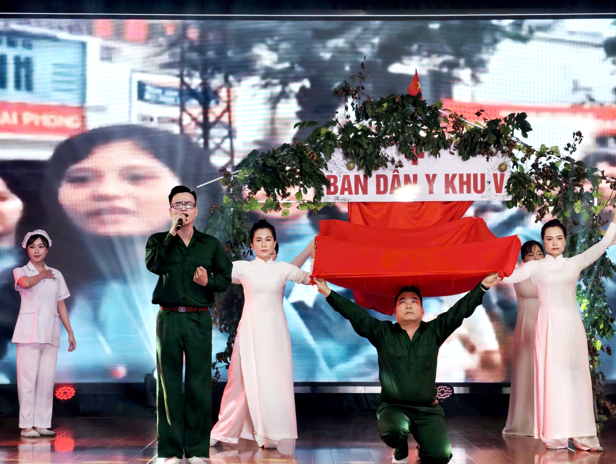Tiết mục của Liên quân 1 tái hiện những ngày tháng trong chiến tranh của cán bộ chiến sĩ Ban Dân y khu 5, tiền thân của Bệnh viện C Đà Nẵng ngày nay.