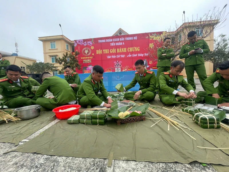 Trong không khí rộn ràng ngày xuân, các đội thi không chỉ thể hiện kỹ thuật gói bánh nhanh, đẹp, đúng quy cách, mà còn lồng ghép các tiết mục văn nghệ, tái hiện sinh động giá trị truyền thống. Mỗi chiếc bánh chưng vuông vắn không chỉ đạt yêu cầu hình thức mà còn gửi gắm tâm huyết, tình cảm của các cán bộ, chiến sĩ.