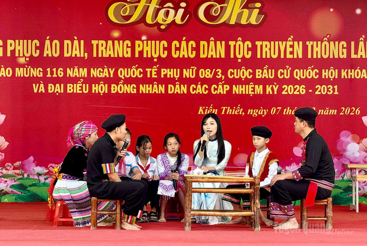 Hội thi thu hút 18 thí sinh đến từ các trường học và thôn, bản trên địa bàn xã tham gia. Các thí sinh tranh tài ở 3 nội dung: trình diễn trang phục áo dài; phần thi năng khiếu với các tiết mục tiểu phẩm, thơ ca, hát múa truyền thống, thuyết trình… (thời gian tối đa 15 phút) và trình diễn trang phục dân tộc. Nhiều bộ trang phục đặc sắc của các dân tộc như: Dao đỏ, Dao Thanh y, Nùng, Mông đỏ, Mông trắng, Tày, Thái, Mường, Sán Dìu, Hoa, La Chí… được giới thiệu, góp phần tôn vinh vẻ đẹp phụ nữ và bản sắc văn hóa các dân tộc trên địa bàn.