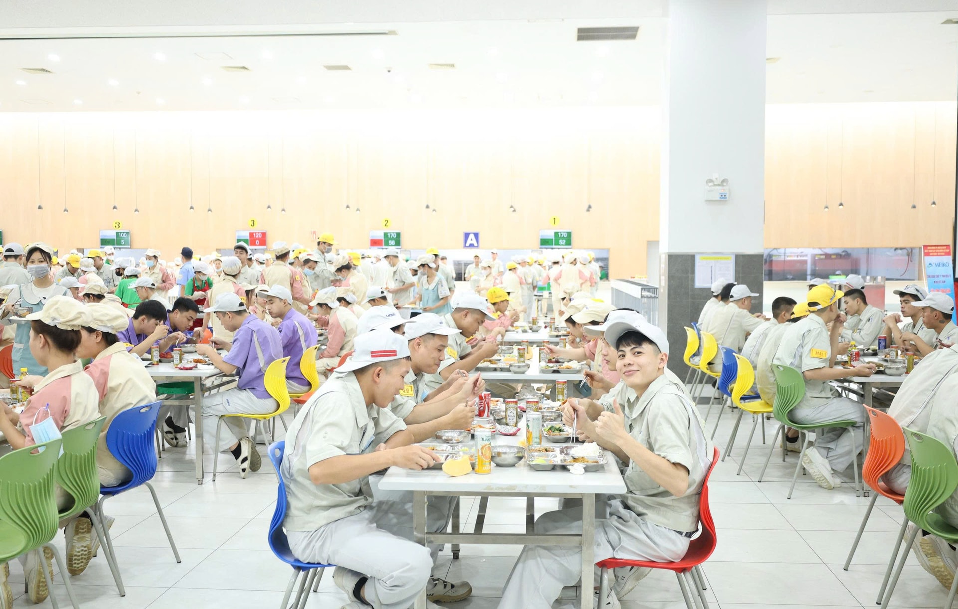 Người lao động tại Công ty TNHH Điện Tử Meiko Việt Nam (Khu công nghiệp Thạch Thất - Quốc Oai) tham gia Chương trình “Bữa cơm Công đoàn”. Ảnh: PV