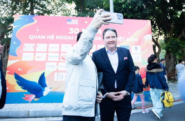Đại sứ Hoa Kỳ tại Việt Nam Marc E. Knapper chụp ảnh selfie với người dân thủ đô.