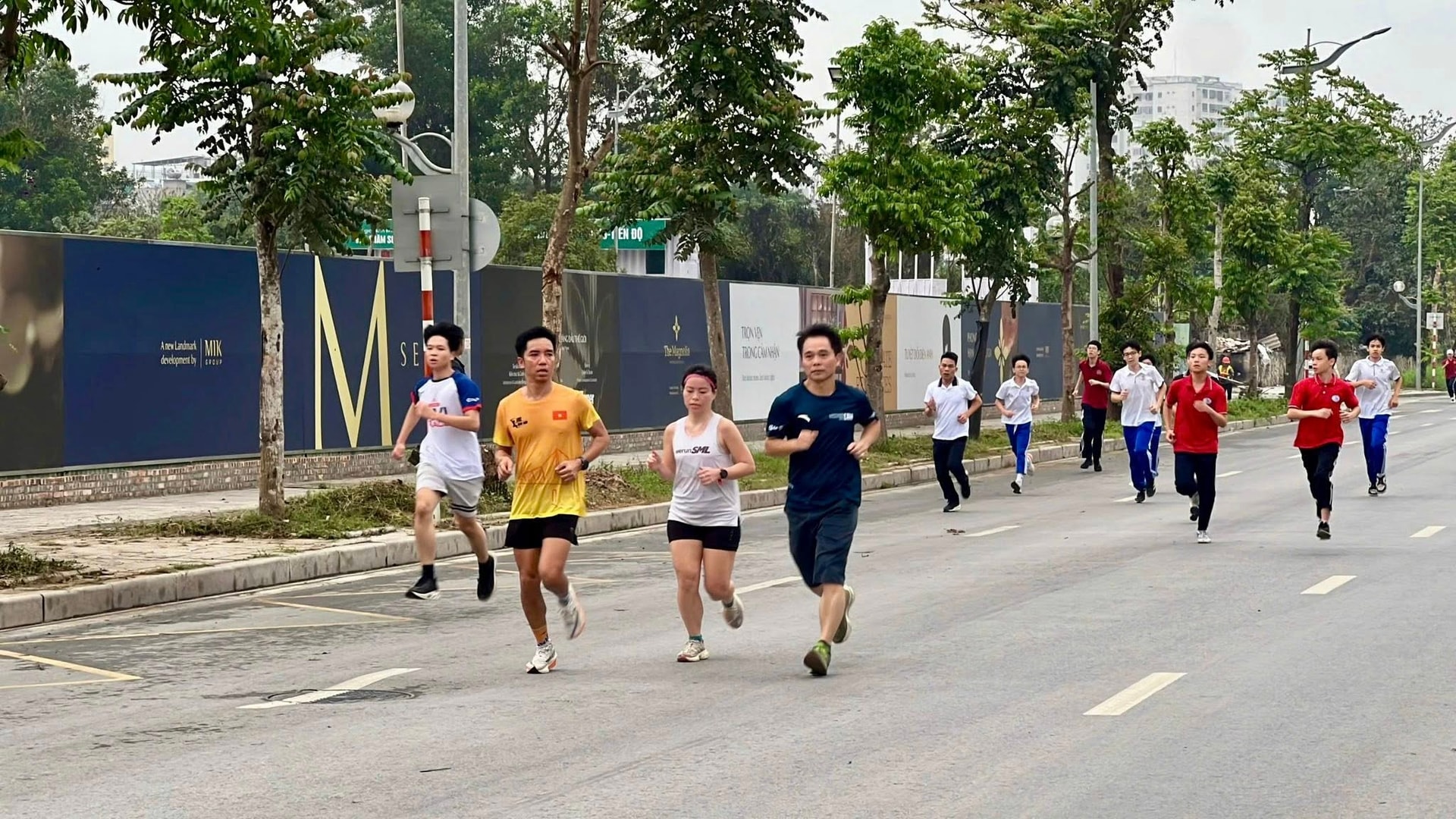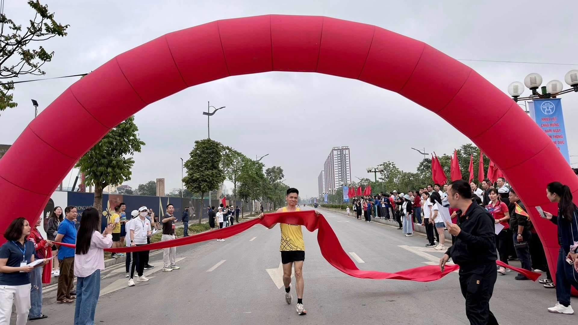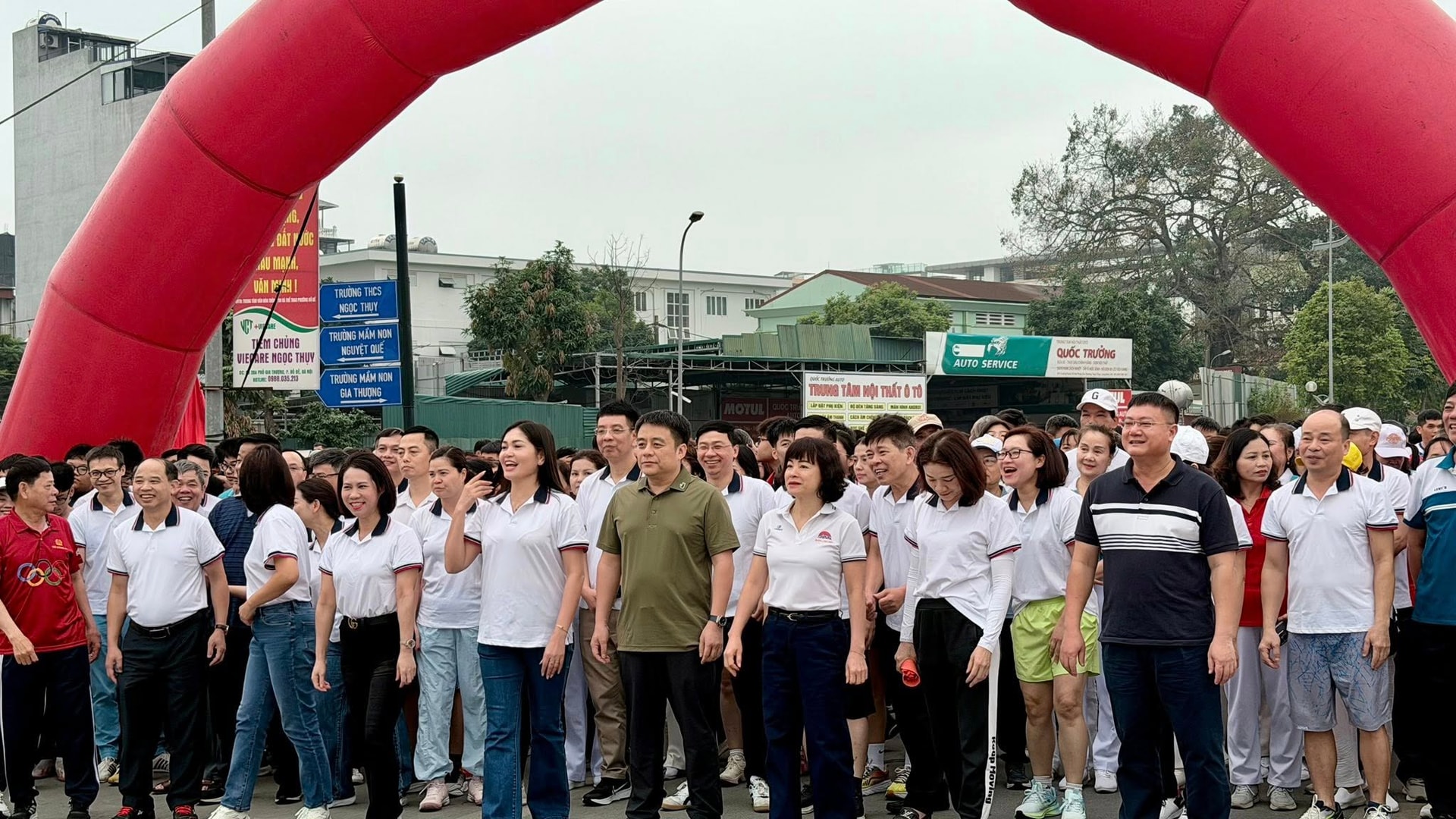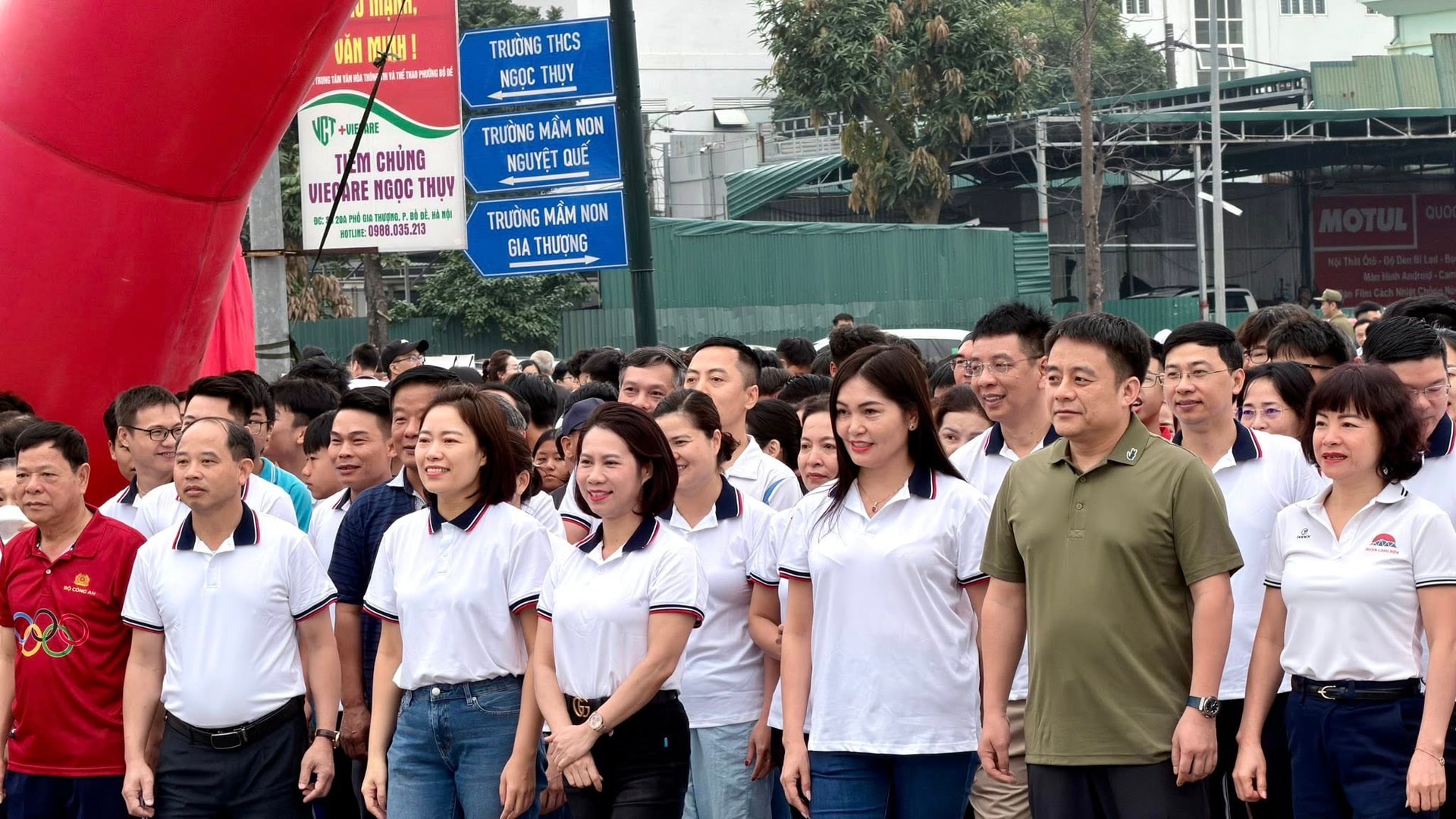 Lãnh đạo phường Bồ Đề và hơn 1100 vận động viên tham gia chạy hưởng ứng. Ảnh: Ngân Hà