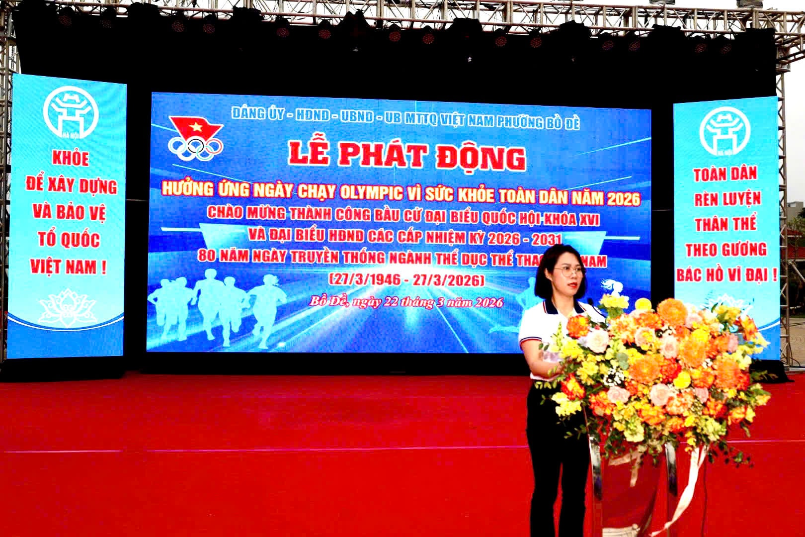 Phát biểu khai mạc, Phó Chủ tịch UBND phường Bồ Đề Đào Thị Hoa cho biết: Ngày chạy Olympic vì sức khỏe toàn dân phường Bồ Đề và lễ phát động Giải chạy Hànôịmới lần thứ I - Vì hòa bình năm 2026 là sự kiện nằm trong chuỗi hoạt động văn hóa, nghệ thuật, thể dục thể thao chào mừng thành công cuộc bầu cử đại biểu Quốc hội và HĐND các cấp nhiệm kỳ 2026 - 2031; đồng thời chào mừng kỷ niệm 80 năm Ngày truyền thống ngành Thể dục thể thao Việt Nam và hưởng ứng Ngày chạy Olympic vì sức khỏe toàn dân năm 2026.