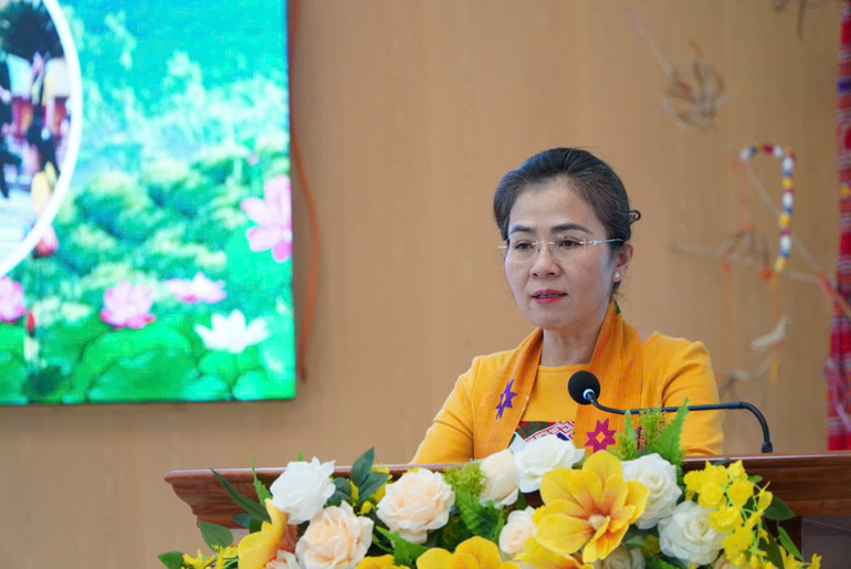 Đồng chí Võ Thị Minh Sinh, Phó Bí thư Tỉnh ủy, Chủ tịch Ủy ban Mặt trận Tổ quốc Việt Nam tỉnh Nghệ An phát biểu tại ngày hội.