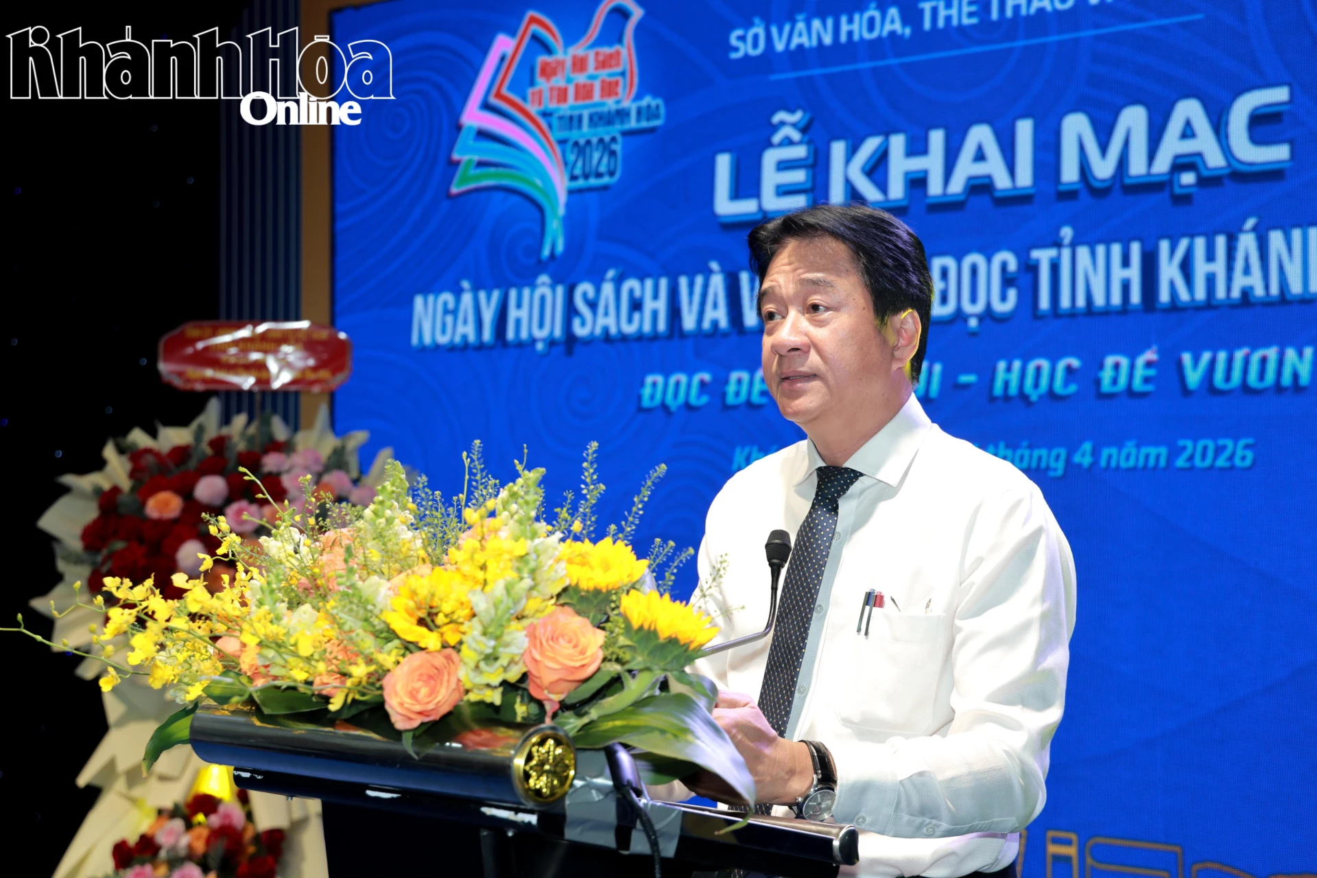Đồng chí Nguyễn Long Biên phát biểu tại lễ khai mạc Ngày hội Sách và Văn hóa đọc tỉnh Khánh Hòa năm 2026.