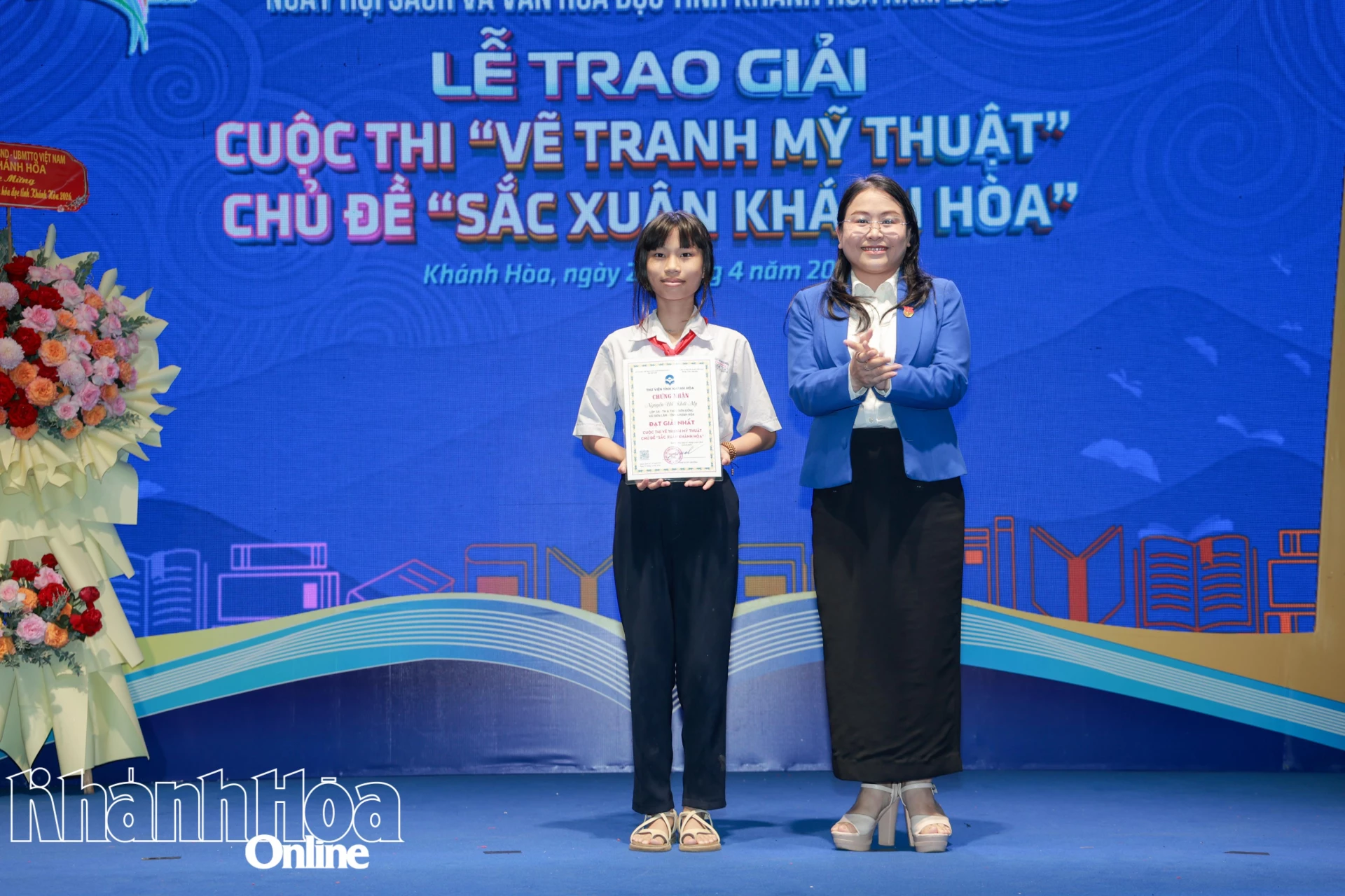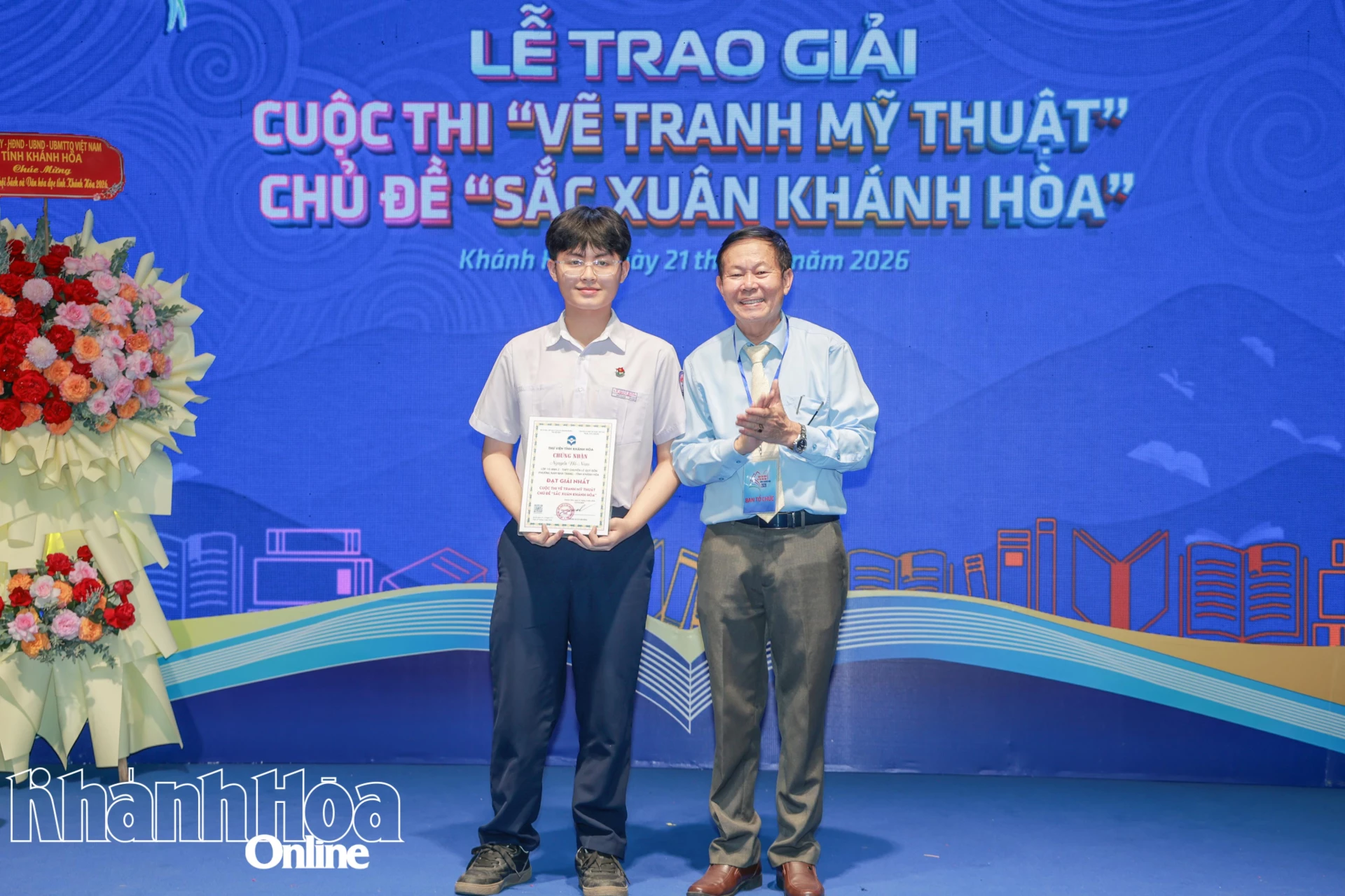 Lãnh đạo Thư viện tỉnh trao giải nhất lứa tuổi THPT cuộc thi vẽ tranh chủ đề “Sắc xuân Khánh Hòa”.
