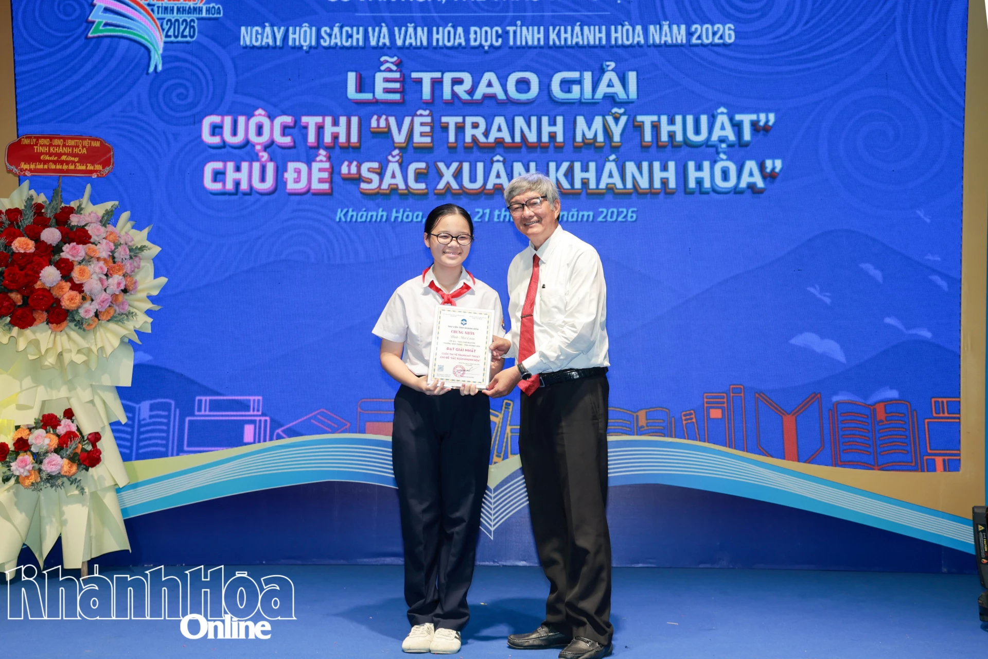 Lãnh đạo Sở Giáo dục và Đào tạo trao giải nhất lứa tuổi THCS cuộc thi vẽ tranh chủ đề “Sắc xuân Khánh Hòa”.