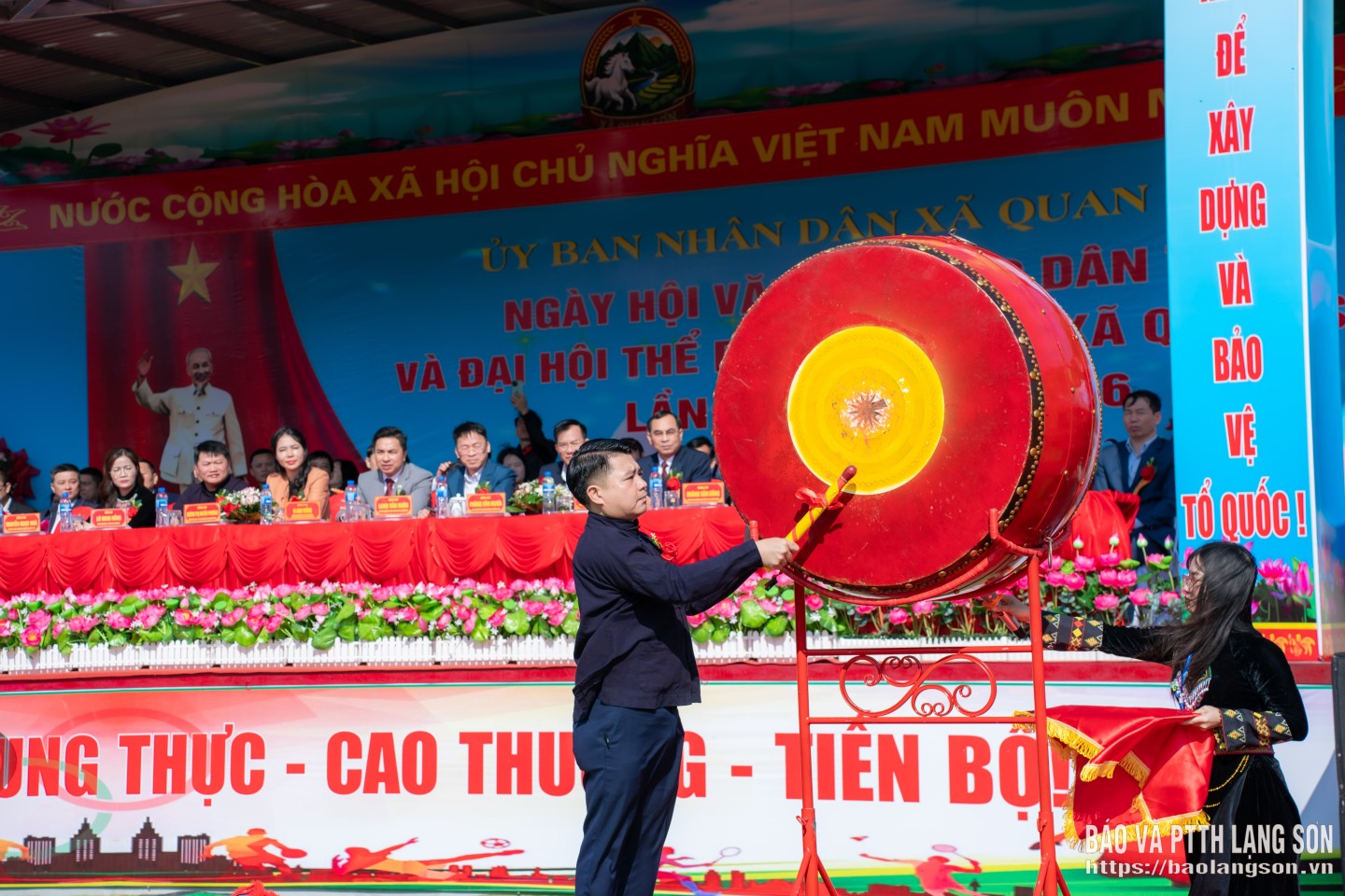 Lãnh đạo xã Quan Sơn đánh trống khai hội