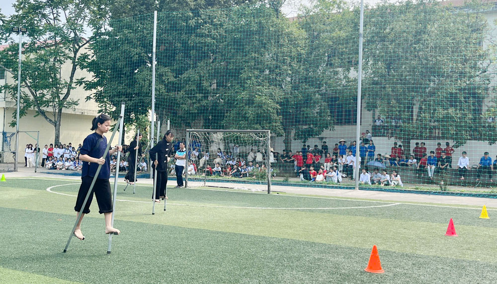 Học sinh tham gia nội dung thi đi cà kheo.