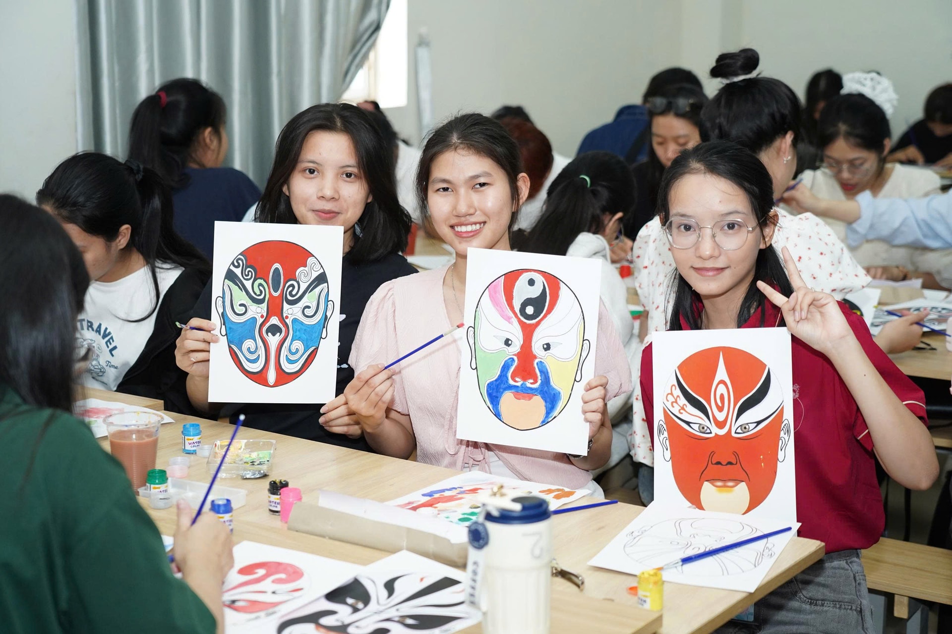 Sinh viên Trường Đại học Ngoại ngữ với phần thi vẽ mặt nạ. Ảnh: DIỄM HƯƠNG - VĂN HẢI