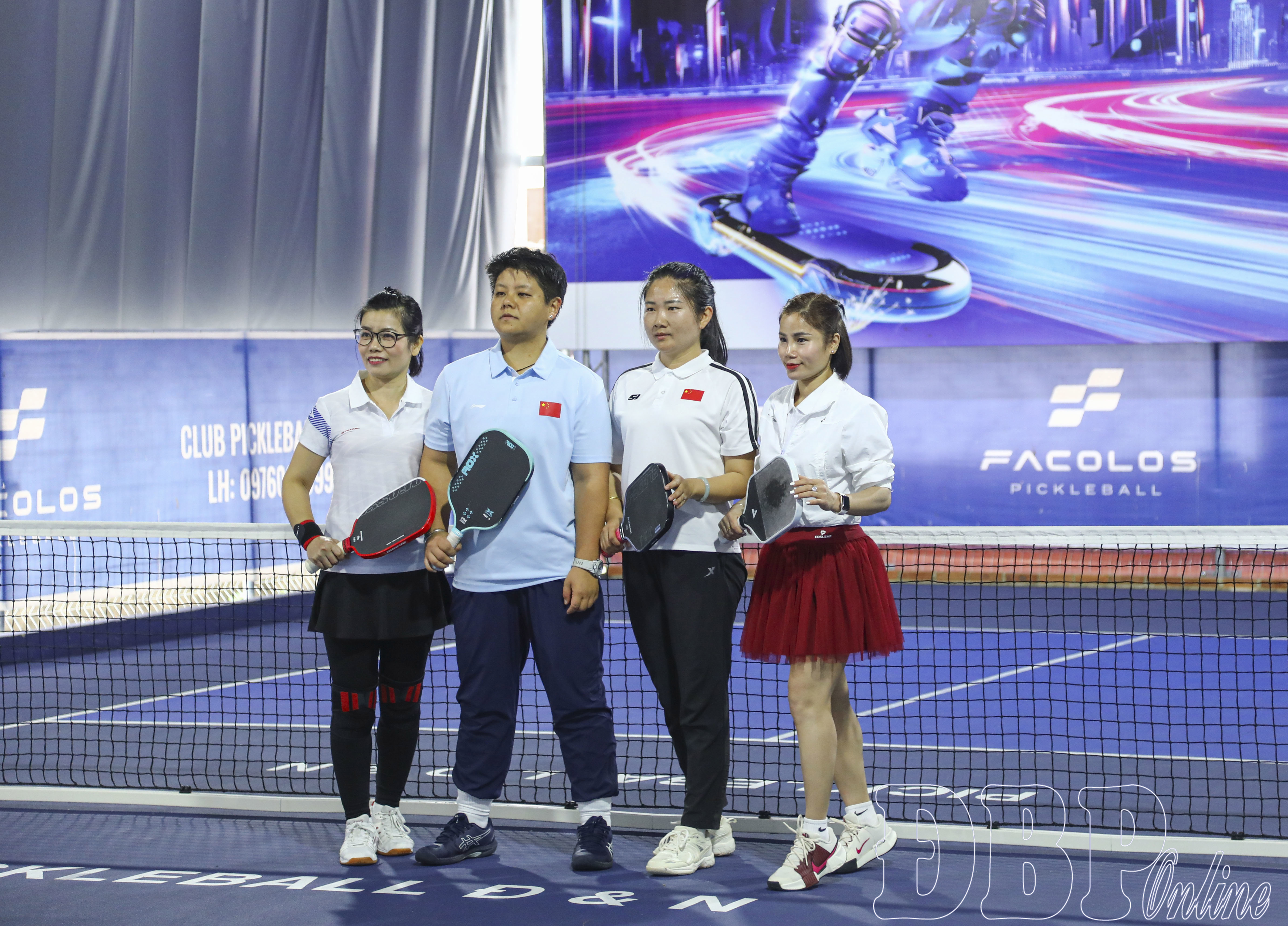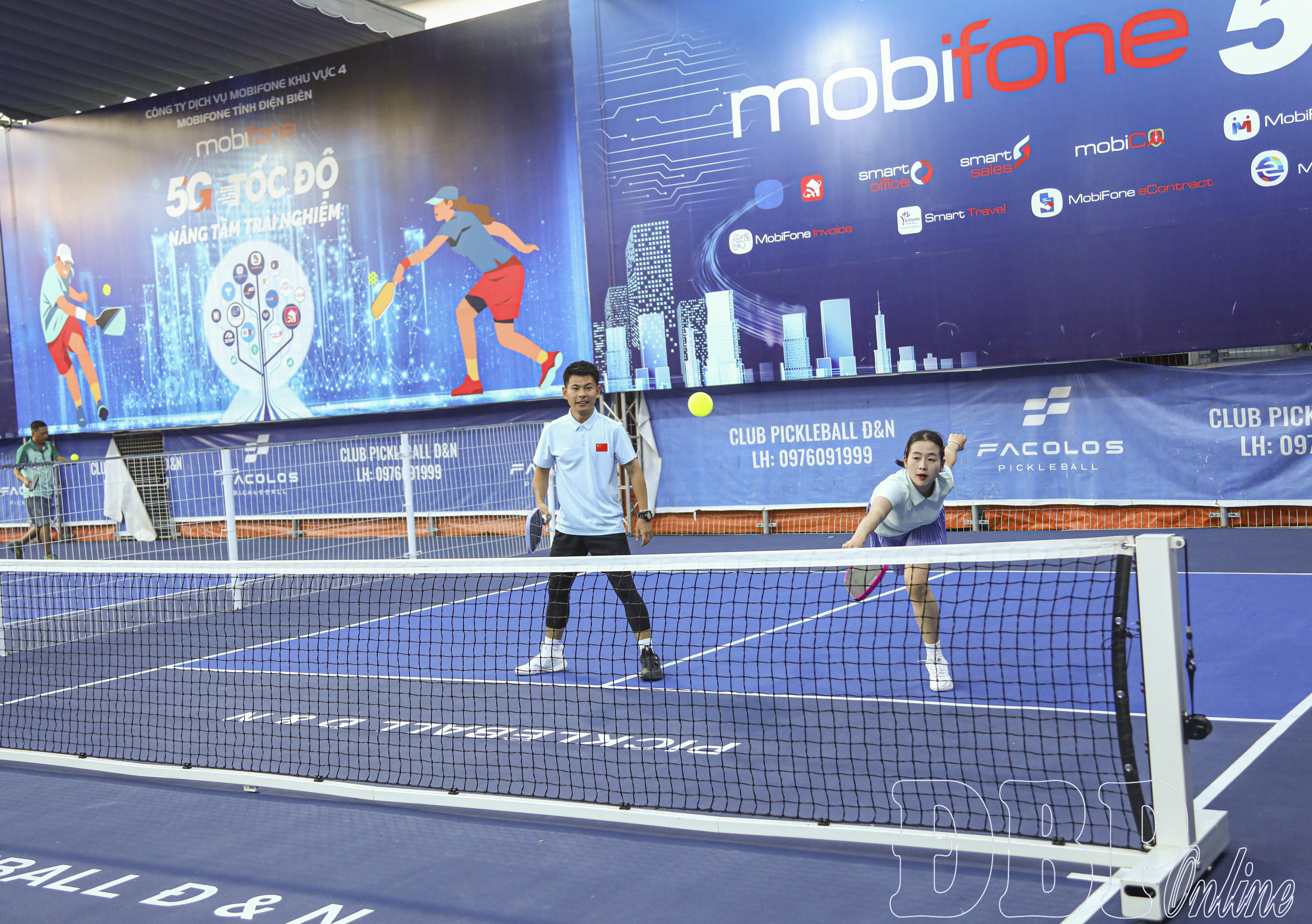 VĐV huyện Giang Thành thi đấu môn pickleball.
