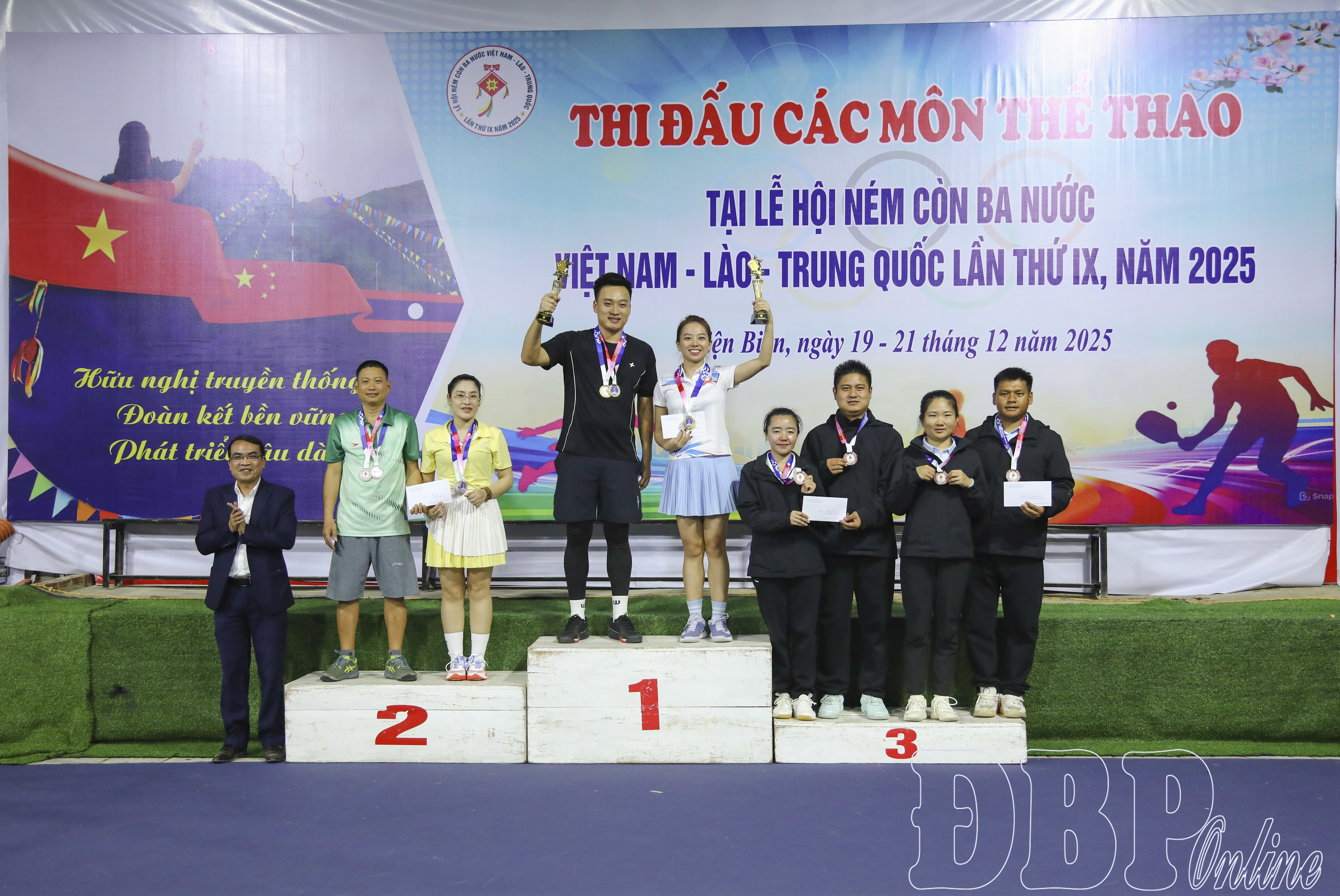 Phó Giám đốc Sở VHTT&DL tỉnh Lai Châu trao huy chương, cúp cho các VĐV đạt thành tích nội dung đôi nam nữ môn pickleball.