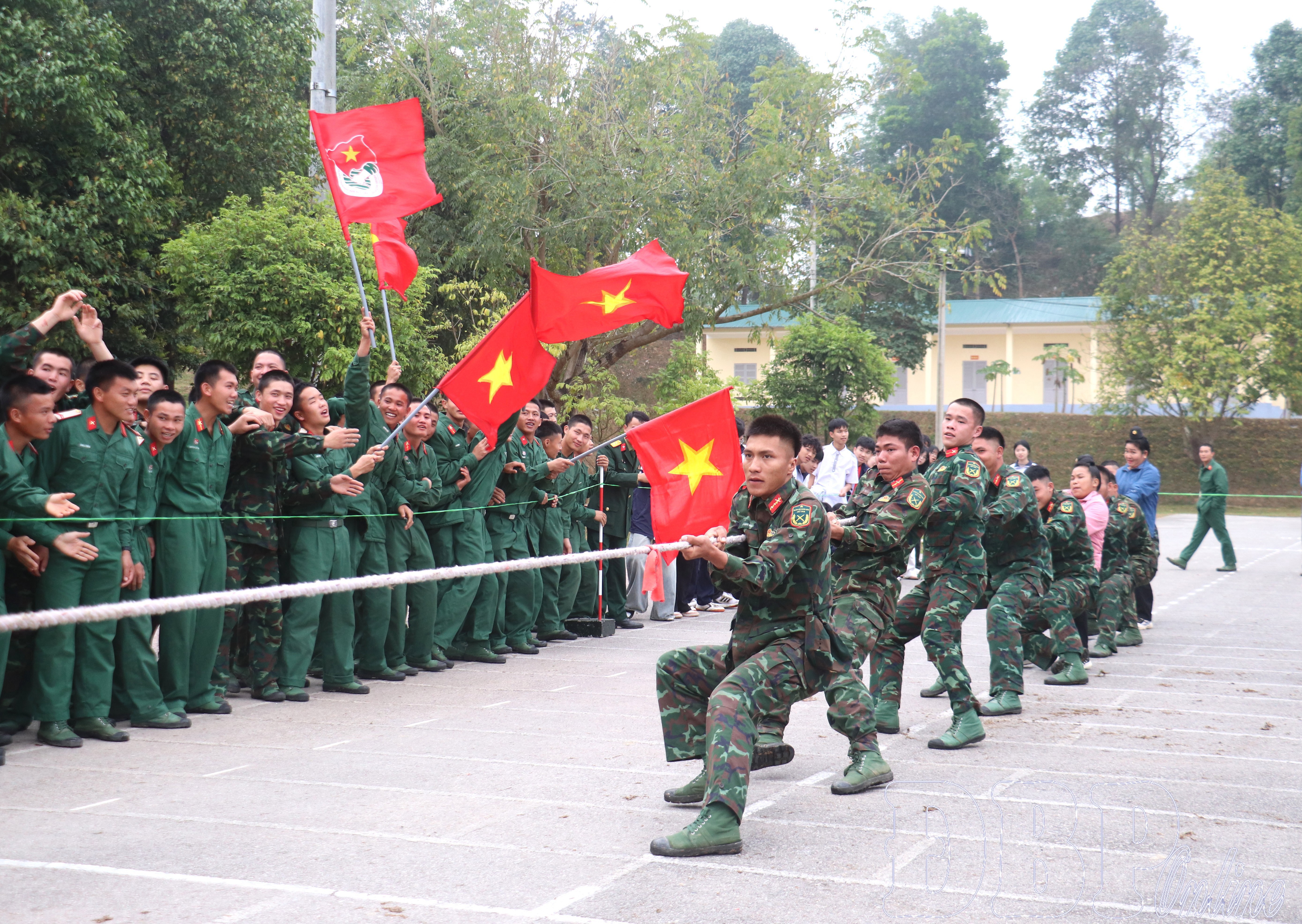 Phần thi kéo co diễn ra nổi nổi, thu hút sự cổ vũ của đông đảo cán bộ, chiến sĩ và đoàn viên thanh niên.