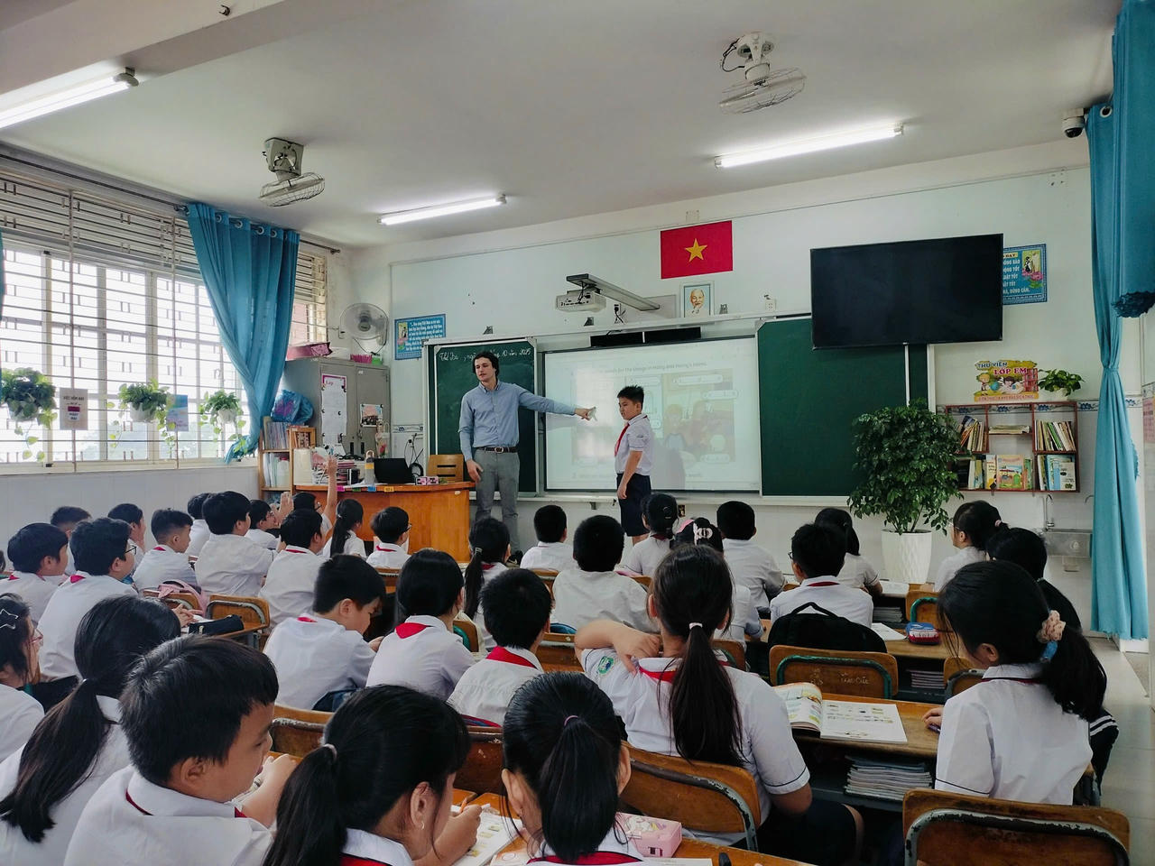 Tiết học tiếng Anh tại Trường Tiểu học Đông Hòa B (Dĩ An, TPHCM). Ảnh: NTCC.