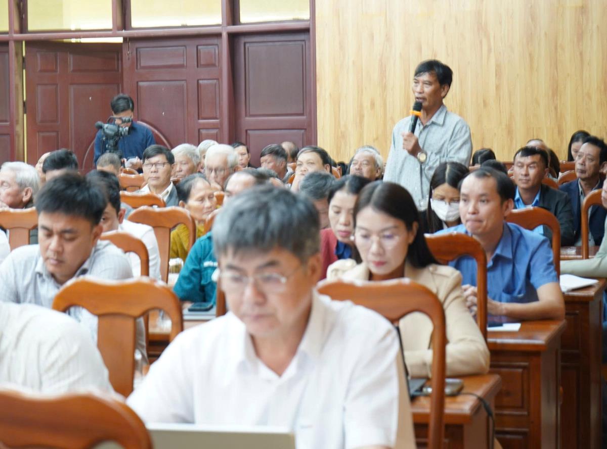 Cử tri nêu kiến nghị tại buổi tiếp xúc.