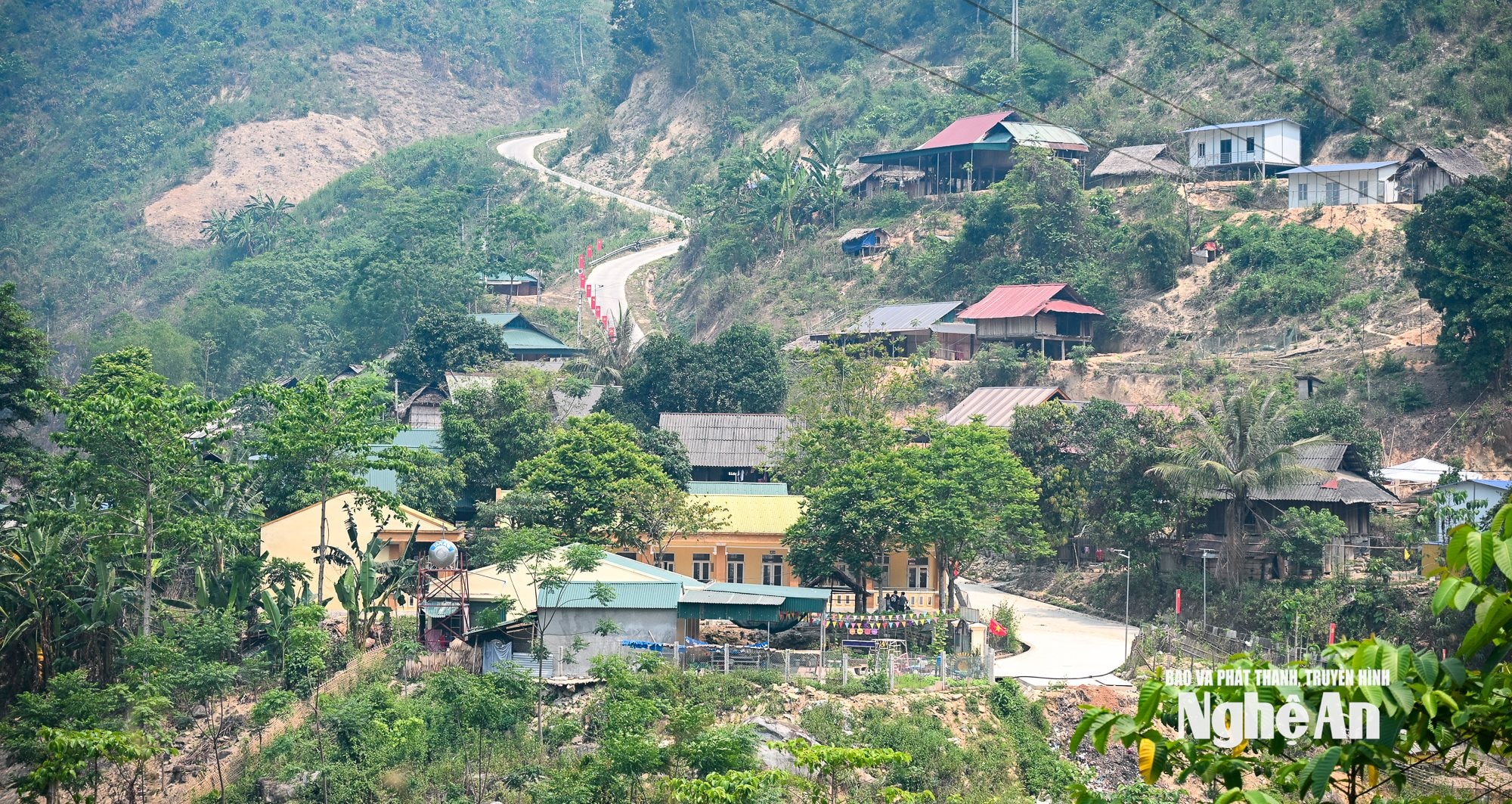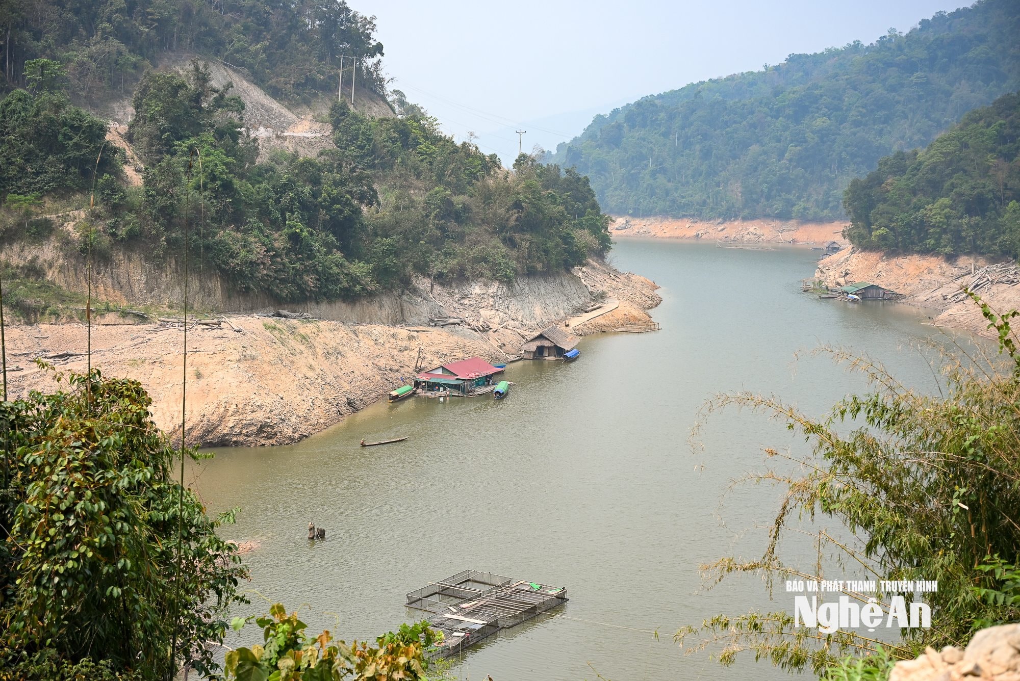 Xã Hữu Khuông gần như cô lập trong lòng hồ thủy điện, giao thông đi lại rất khó khăn. Ảnh: Thành Cường