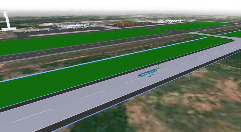 Phối cảnh đường cất hạ cánh số 2 và các công trình đồng bộ tại khu bay Cảng hàng không Phù Cát.