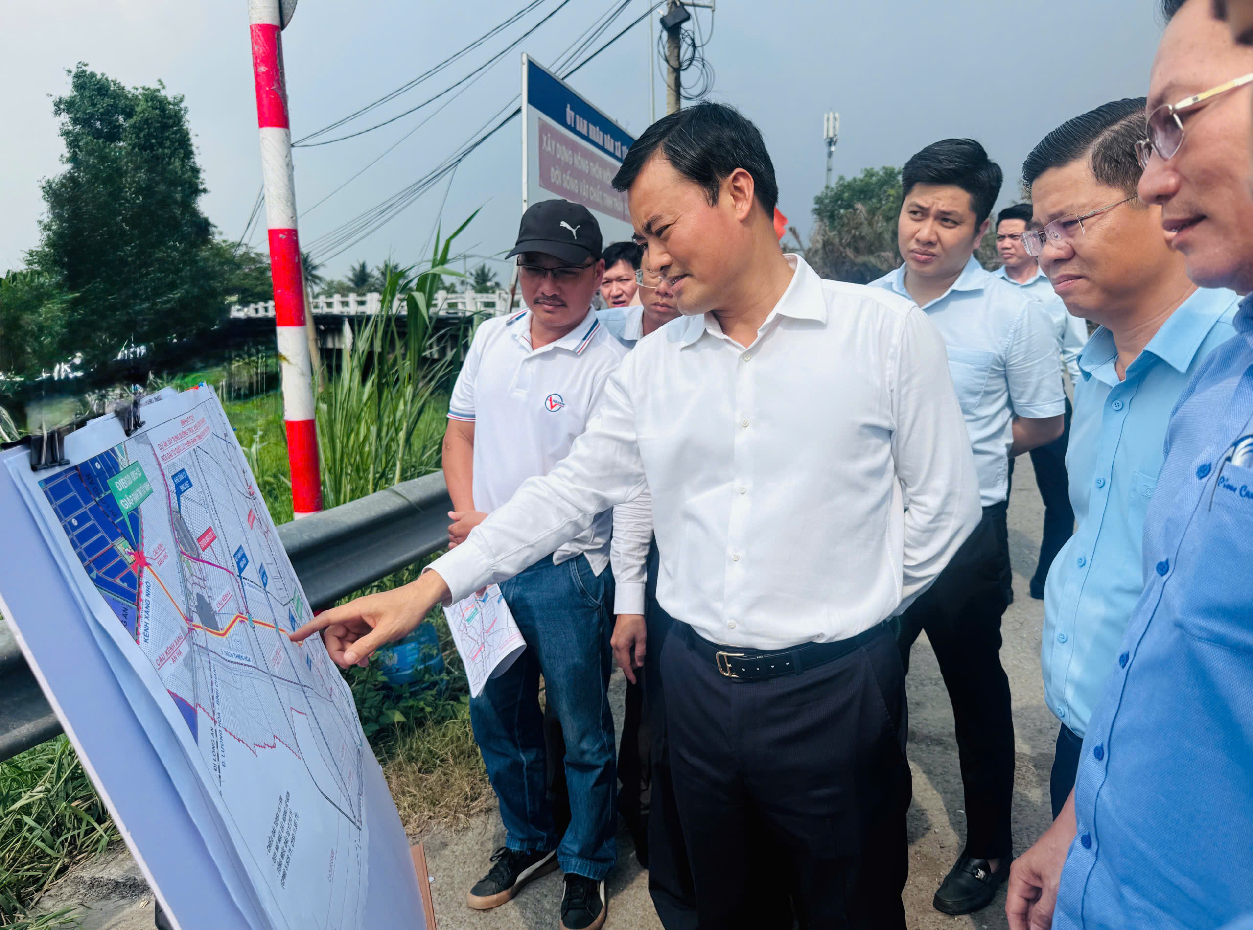 Phó Chủ tịch UBND TP.HCM Bùi Xuân Cường kiểm tra tiến độ dự án. Ảnh: ĐT