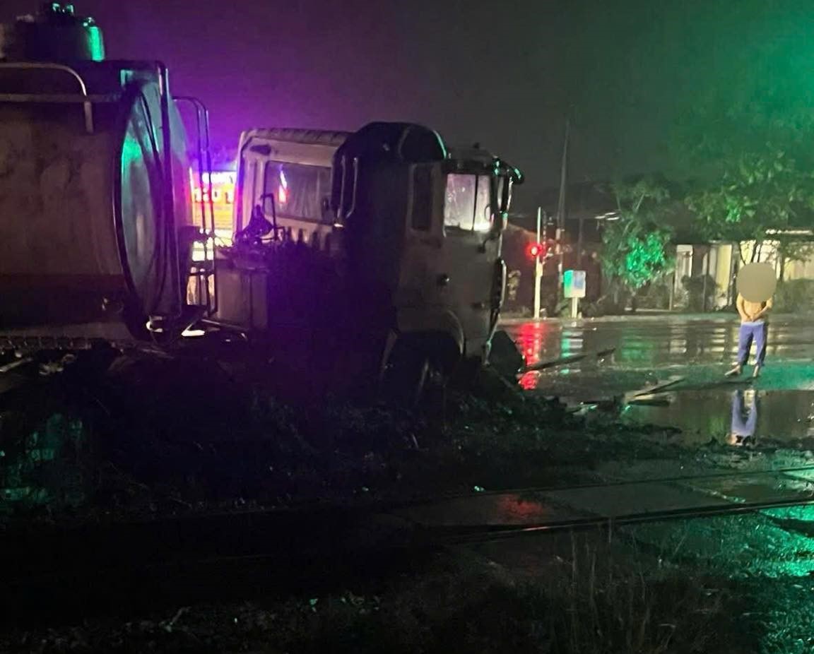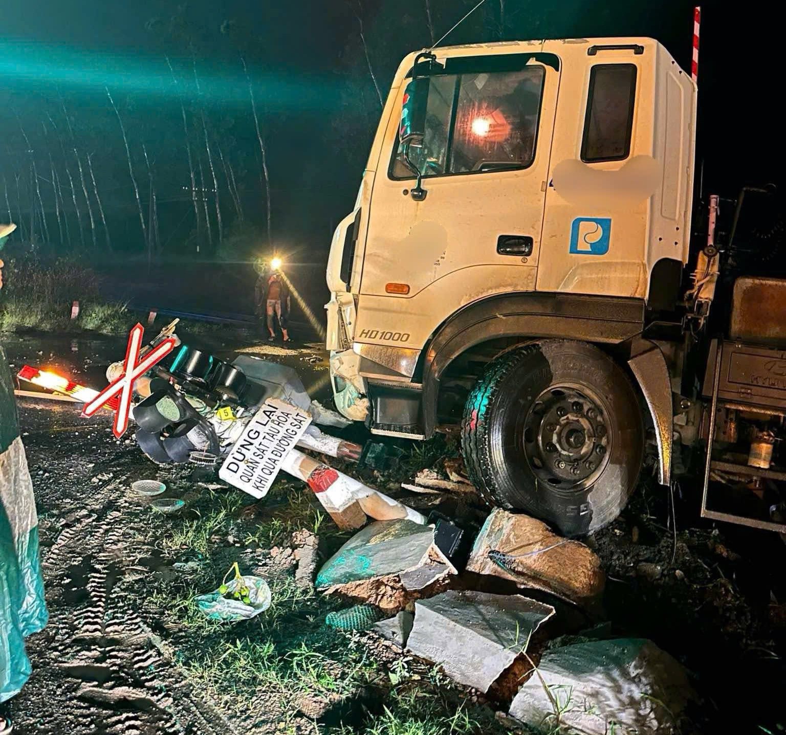 Thời điểm xảy ra sự việc trời mưa, chiếc xe gặp nạn nằm cách mép ray ngoài cùng đường sắt Bắc - Nam khoảng 2,1m.