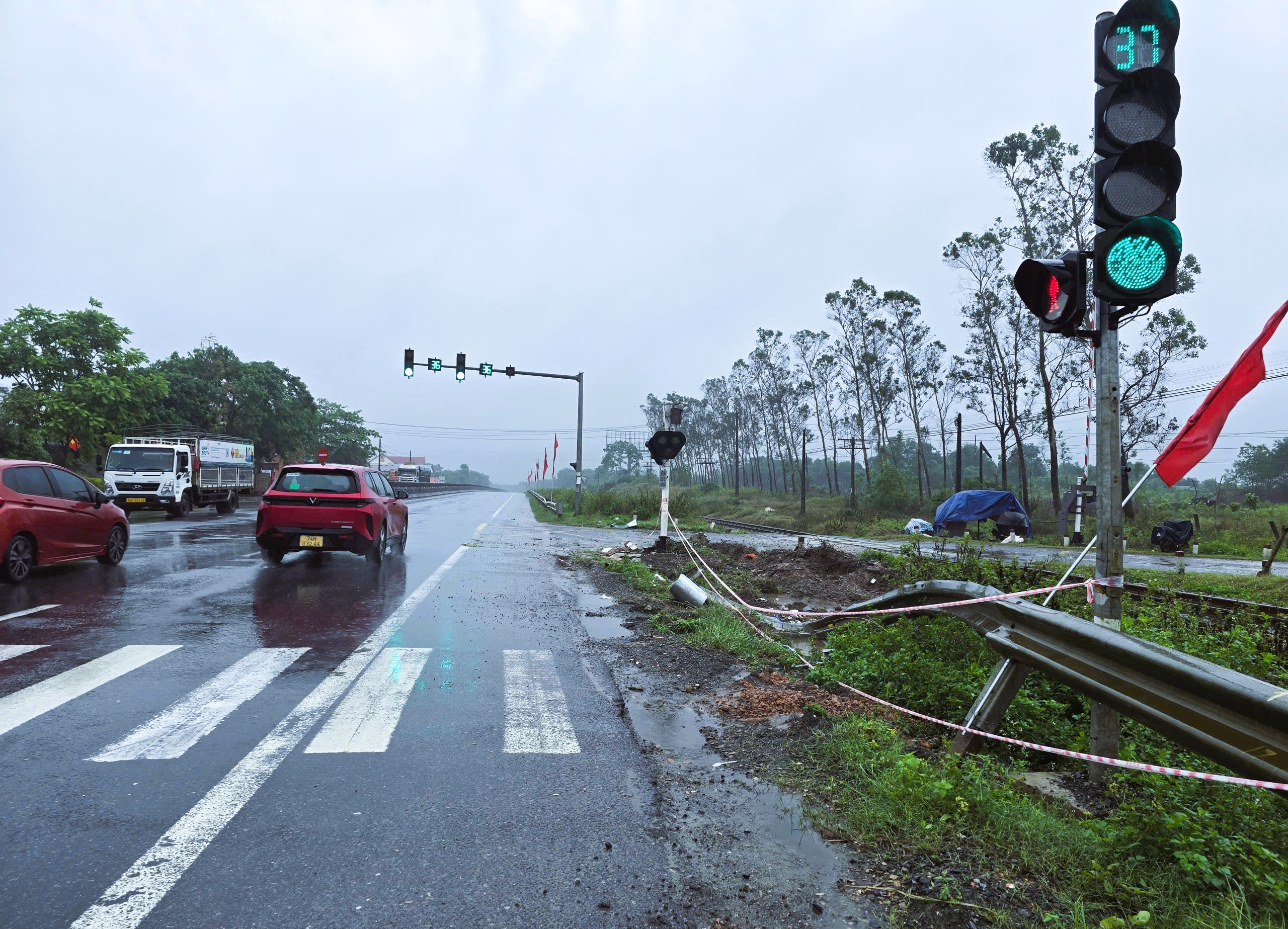Khi đến đoạn đường trên, chiếc ô tô tông gãy một đoạn hộ lan tôn lượn sóng bên phải khu vực nút giao đèn tín hiệu giao thông quốc lộ 1 với đường sắt Bắc - Nam theo hướng lưu thông, sau đó tông gãy cột đèn tín hiệu và thiết bị cần chắn tự động của đường ngang Km 639+750.