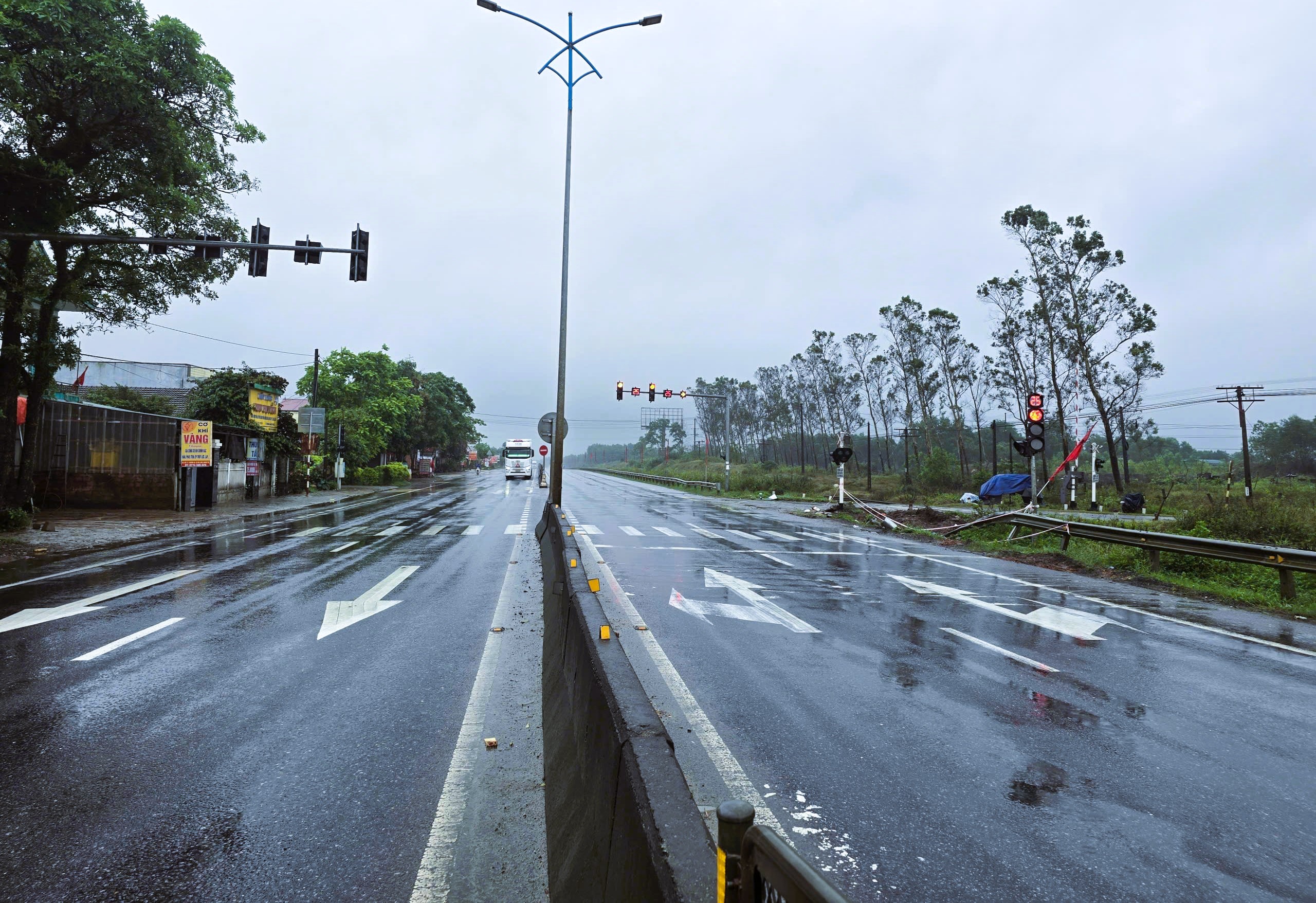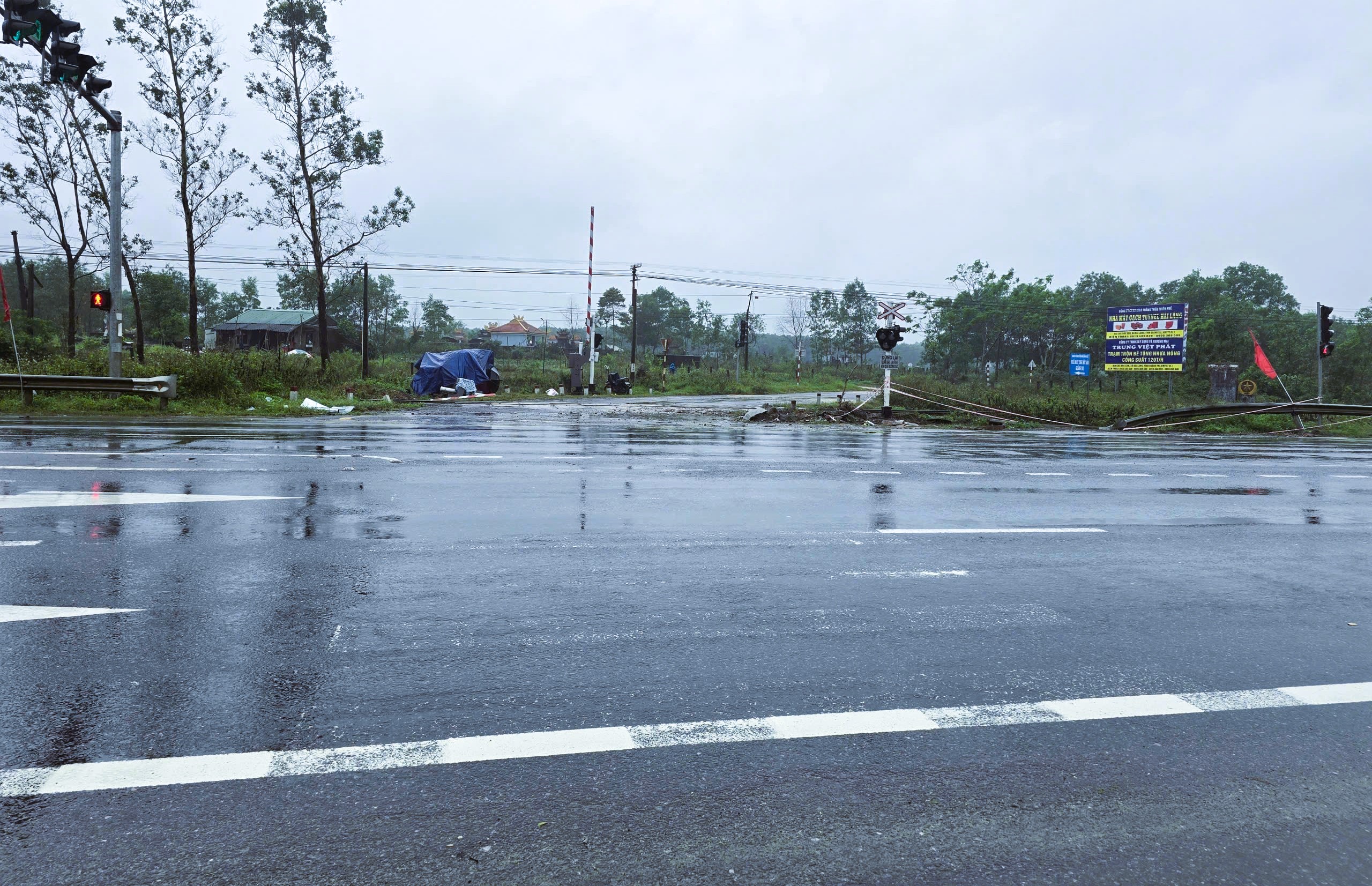 Đây là đường ngang phòng vệ cảnh báo tự động có cần chắn tự động, hệ thống biển báo hiệu khu vực đường ngang đầy đủ.