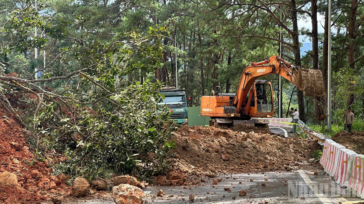 Đơn vị liên quan khẩn trương xử lý hiện trường điểm sạt lở mới trên đèo Mimosa để có thể thông tuyến trở lại trong chiều 4/12.