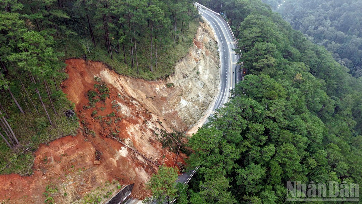 Vị trí sạt lở ta-luy dương trên đèo Prenn trưa 4/12.