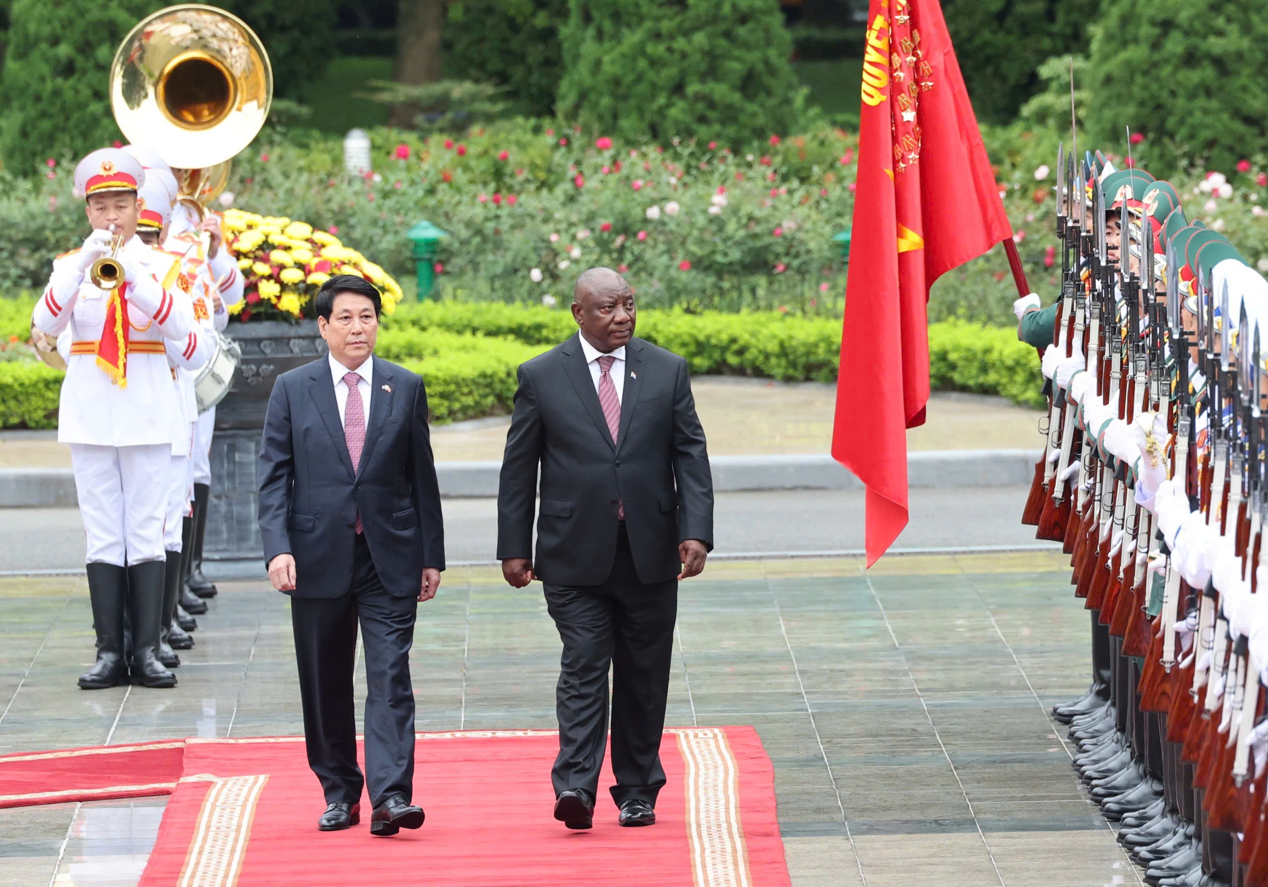 Chủ tịch nước Lương Cường chủ trì lễ đón cấp Nhà nước đối với Tổng thống Nam Phi Matamela Cyril Ramaphosa. Ảnh: QUANG PHÚC.