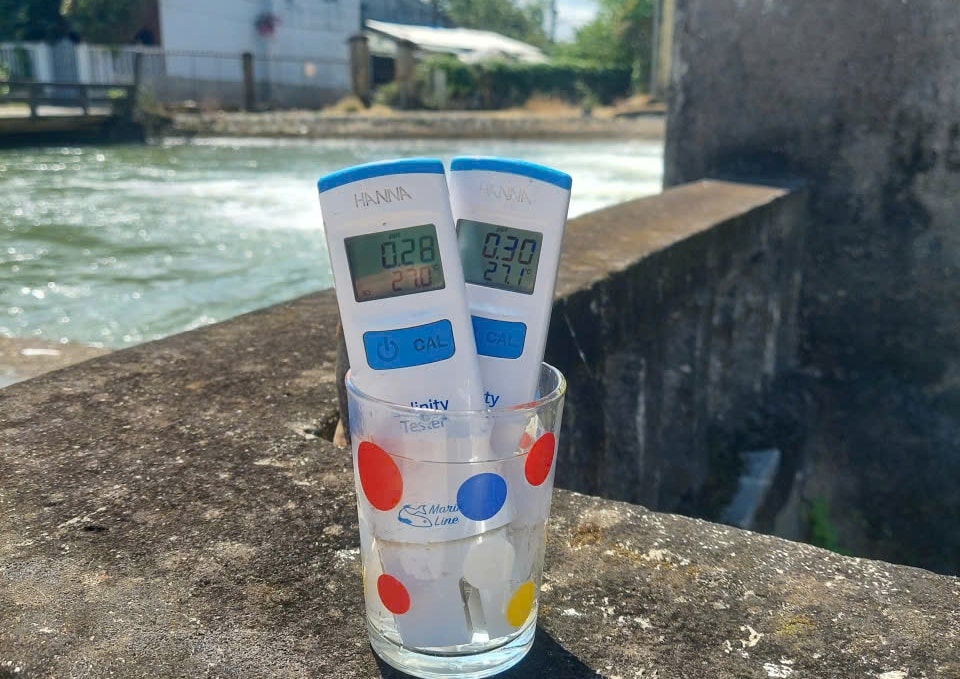 Nồng độ mặn đo được tại bể hút trạm bơm Vĩnh Điện đã sát ngưỡng cho phép cấp nước sinh hoạt từ ngày 28/2. Ảnh: HOÀNG HIỆP