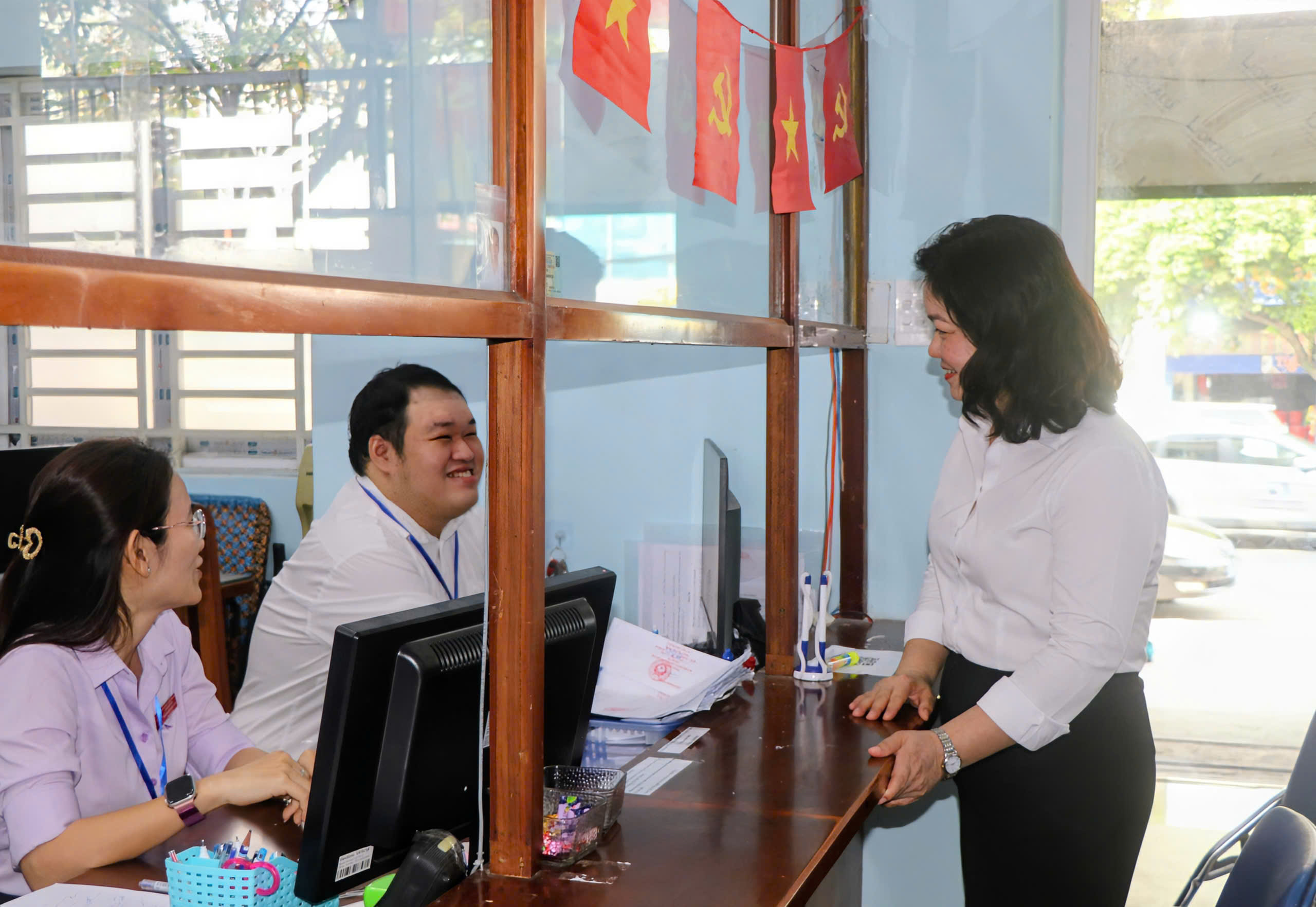 Đồng chí Nguyễn Thị Mỹ Hằng khảo sát tại Trung tâm phục vụ hành chính công phường Phú Thuận
