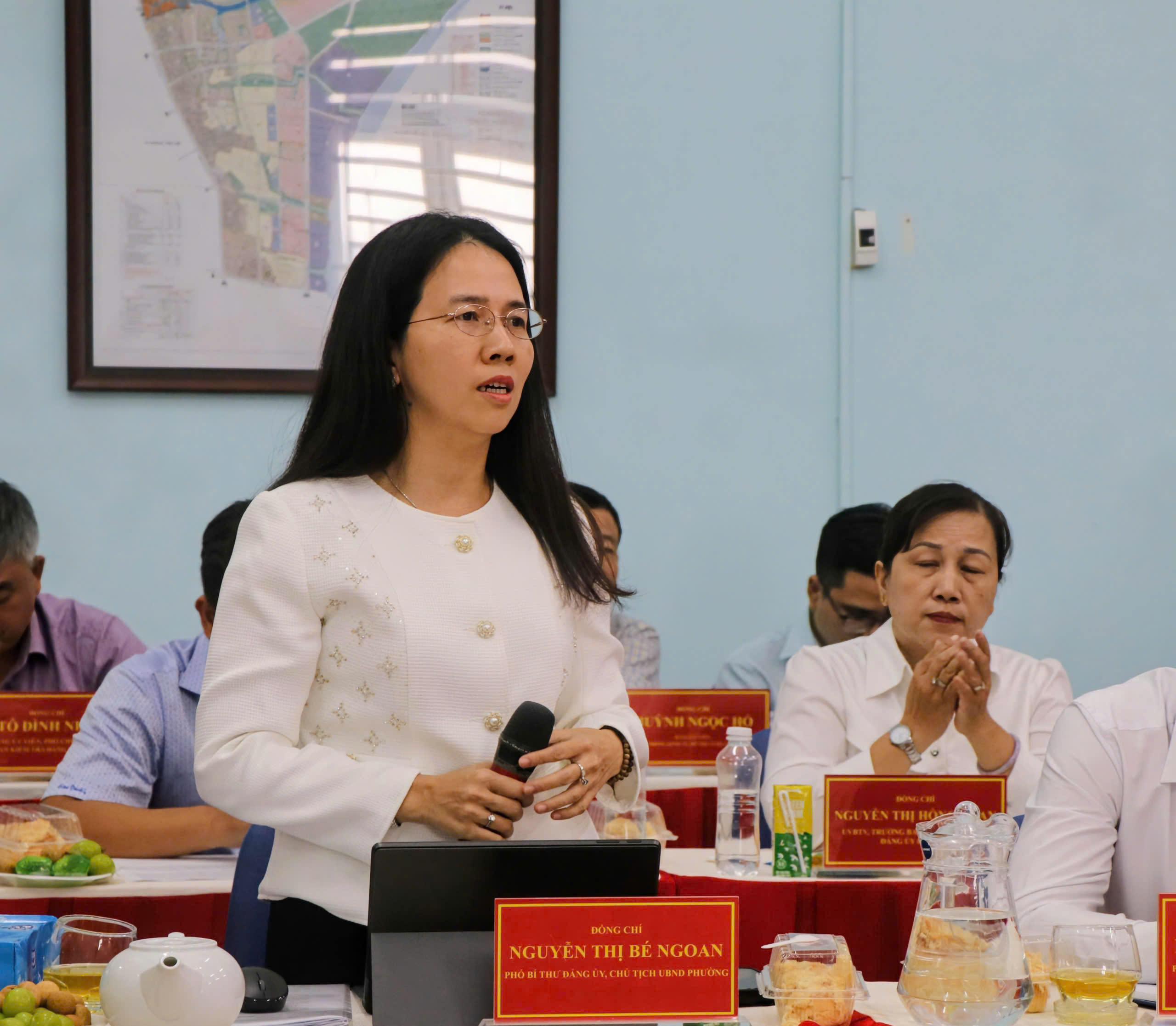 Đồng chí Nguyễn Thị Bé Ngoan báo cáo với tổ công tác