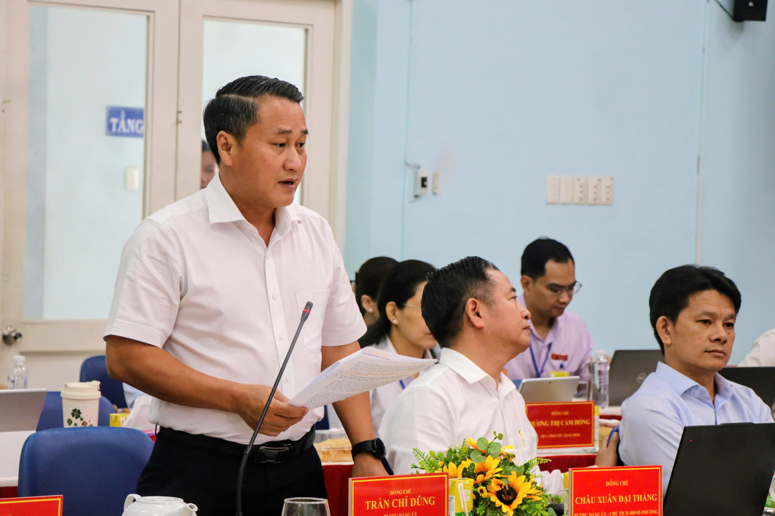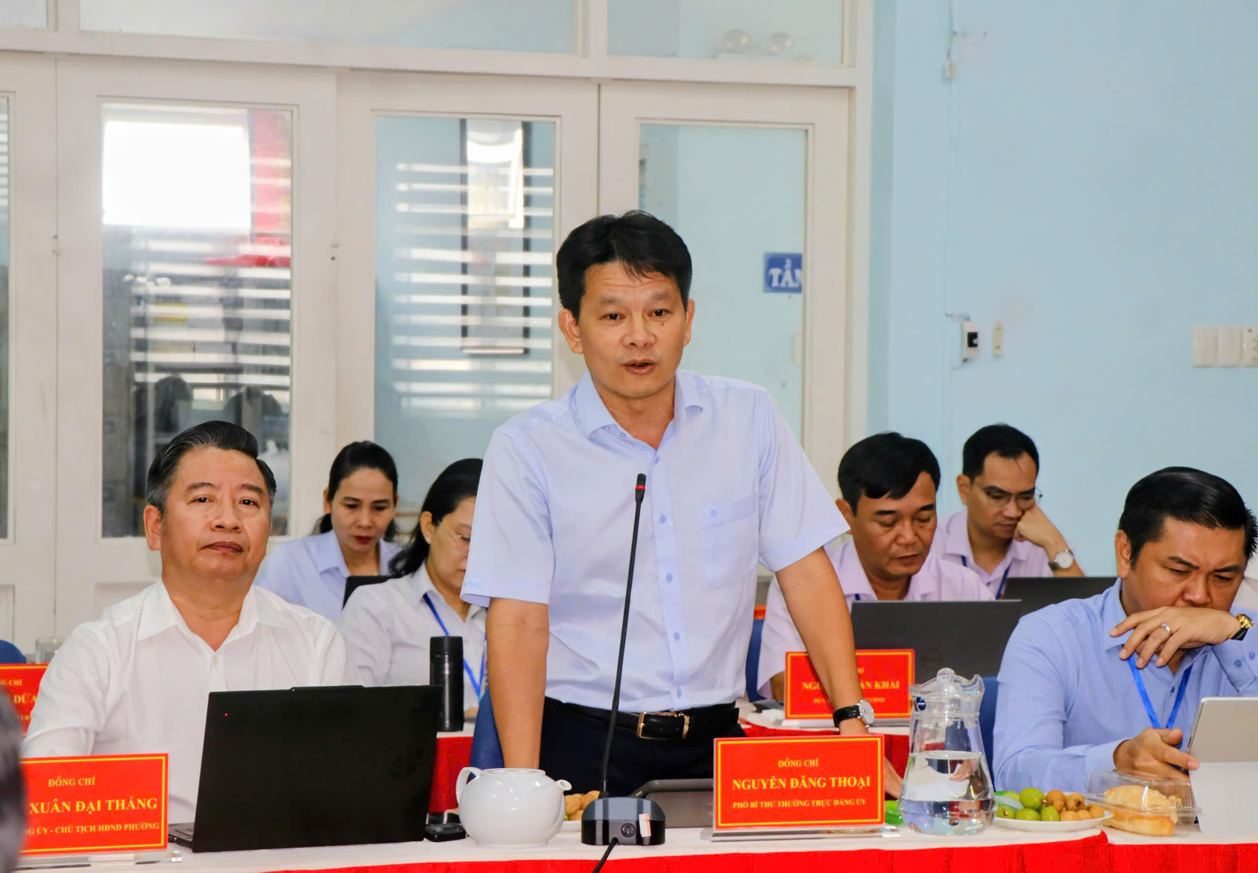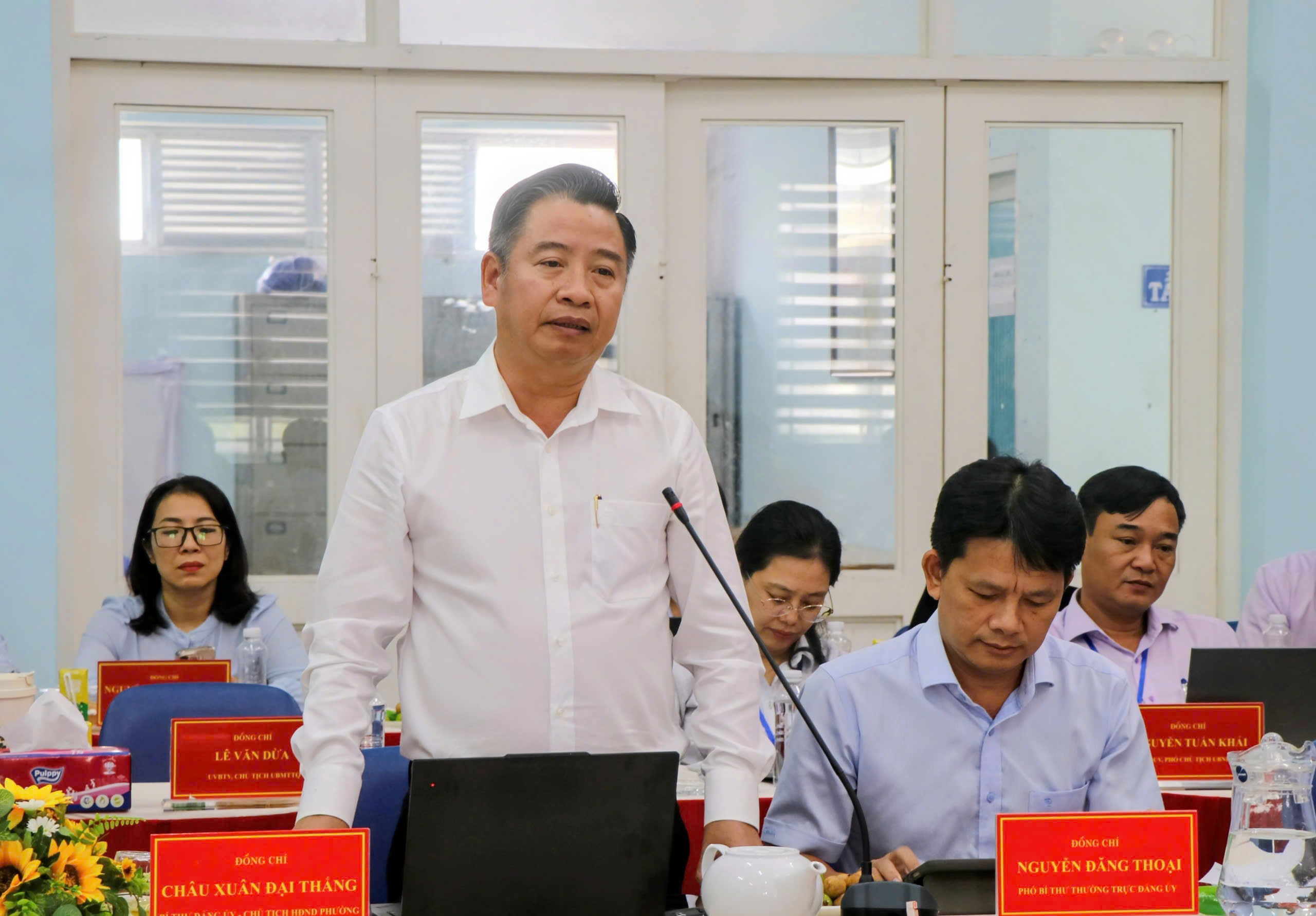 Bí thư Đảng ủy phường Tân Mỹ Trần Chí Dũng nêu kiến nghị tại buổi làm việc