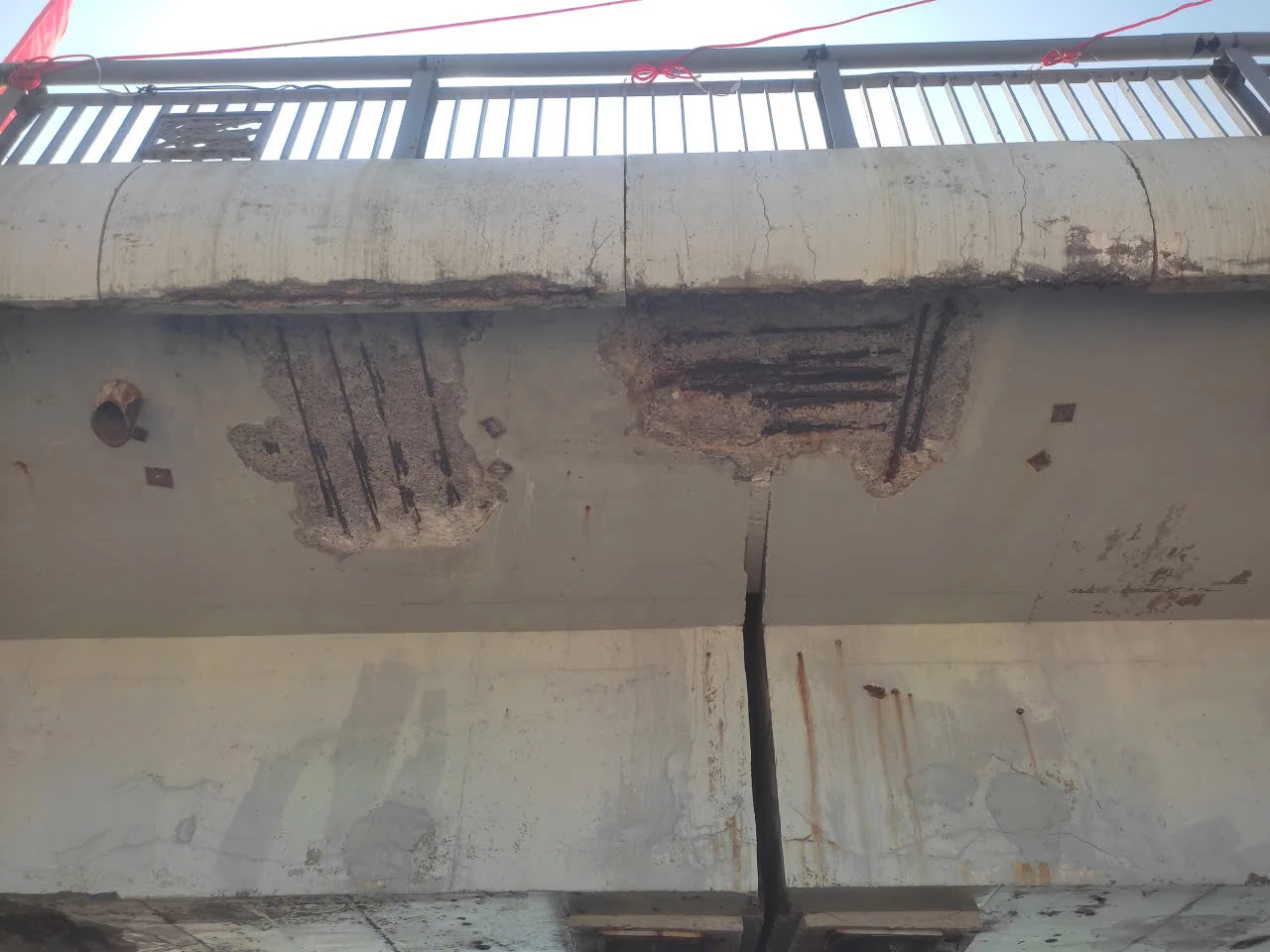 Cầu Trần Phú có nhiều vị trí bị bong tróc lớp bê tông, lòi khung sắt.
