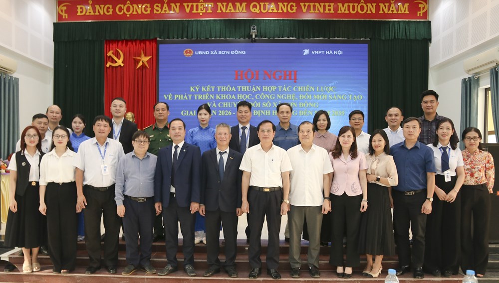 Lễ ký kết thỏa thuận hợp tác chiến lược về phát triển khoa học, công nghệ, đổi mới sáng tạo và chuyển đổi số giai đoạn 2026 - 2030, định hướng đến năm 2035 giữa UBND xã Sơn Đồng và Viễn thông Hà Nội