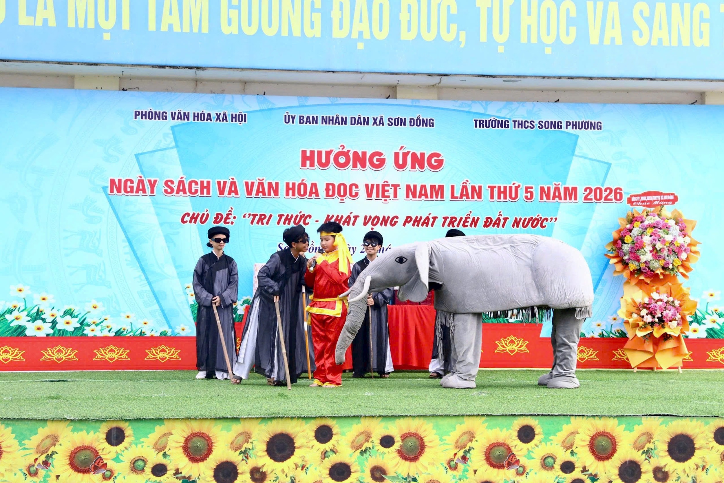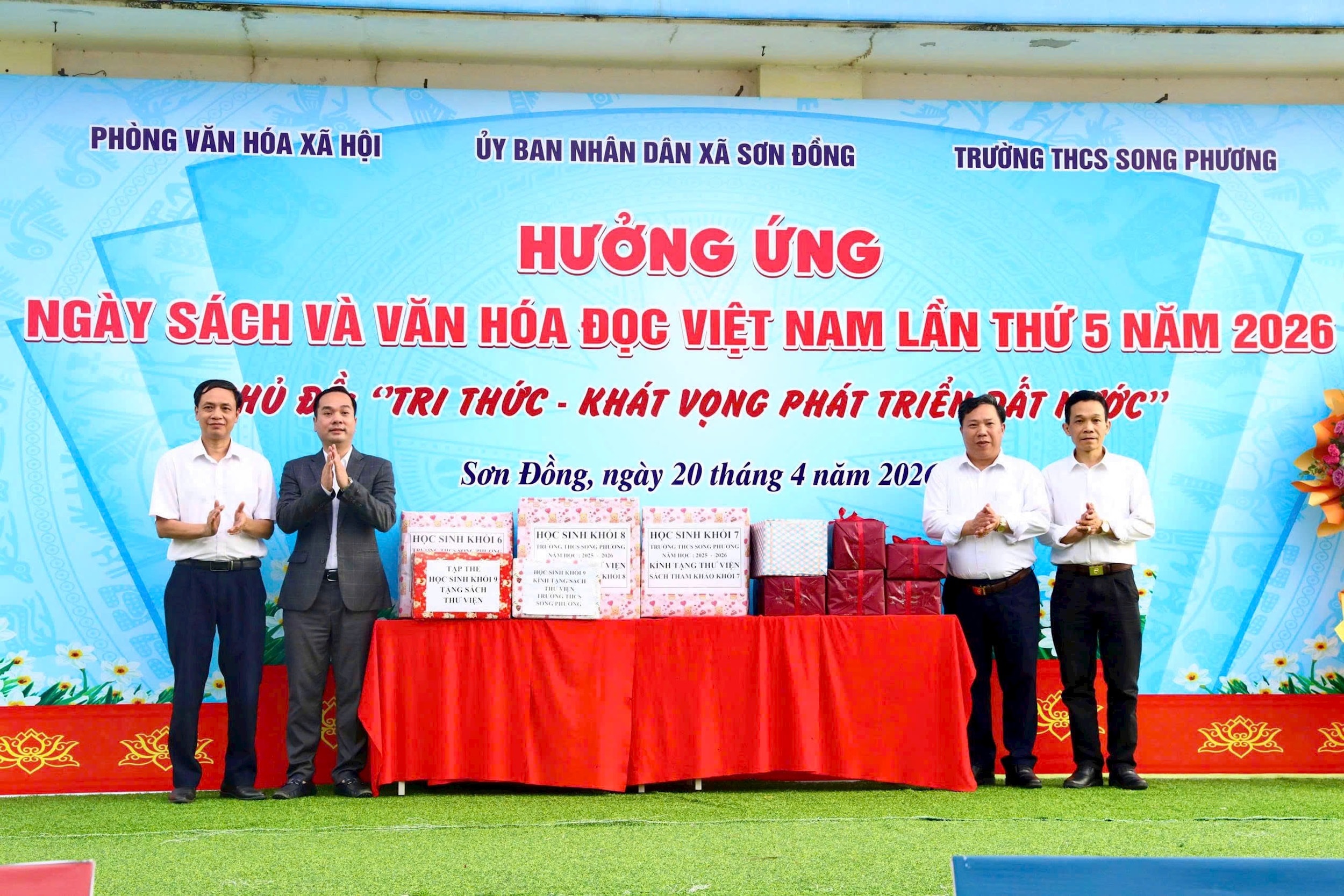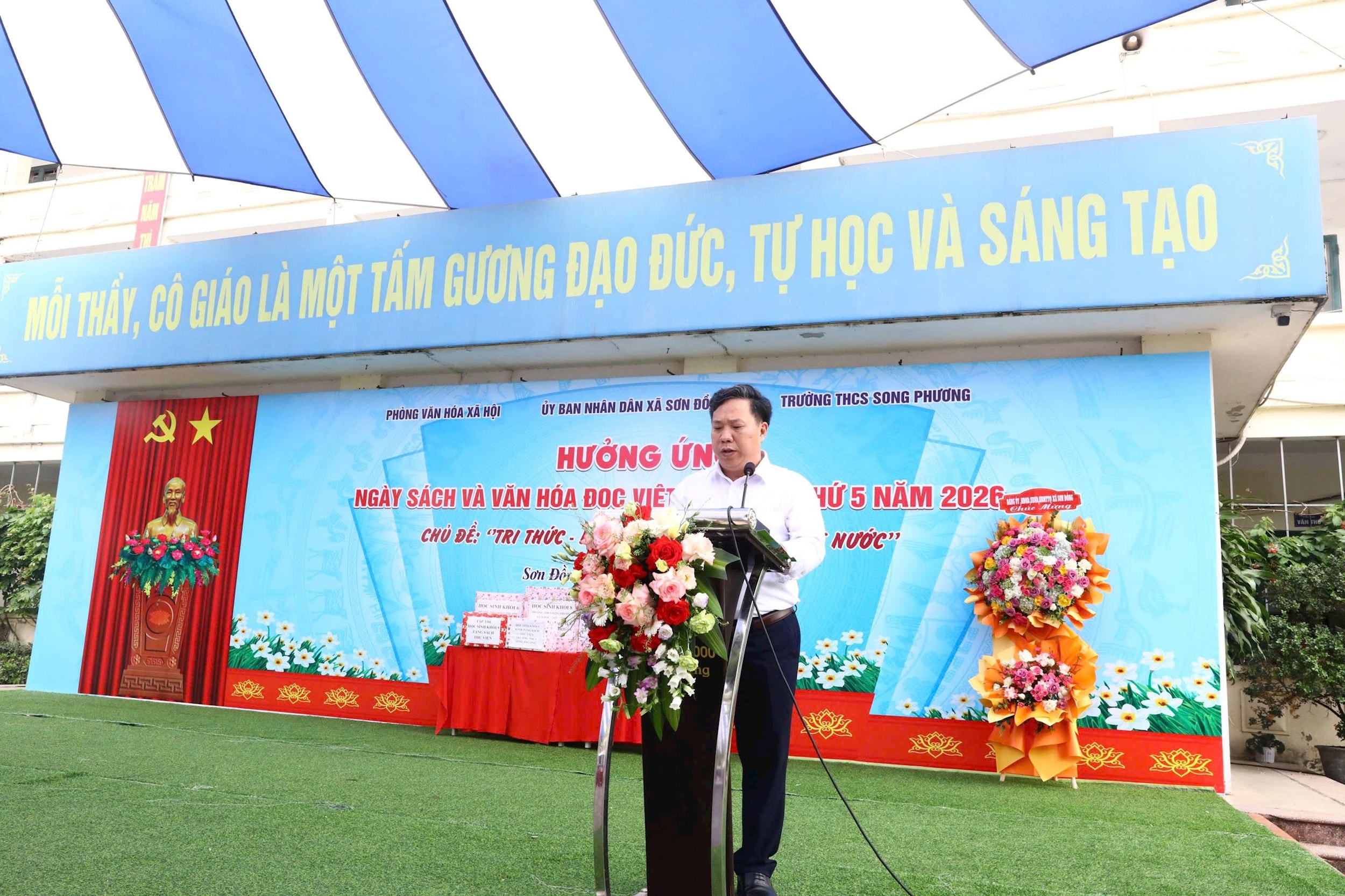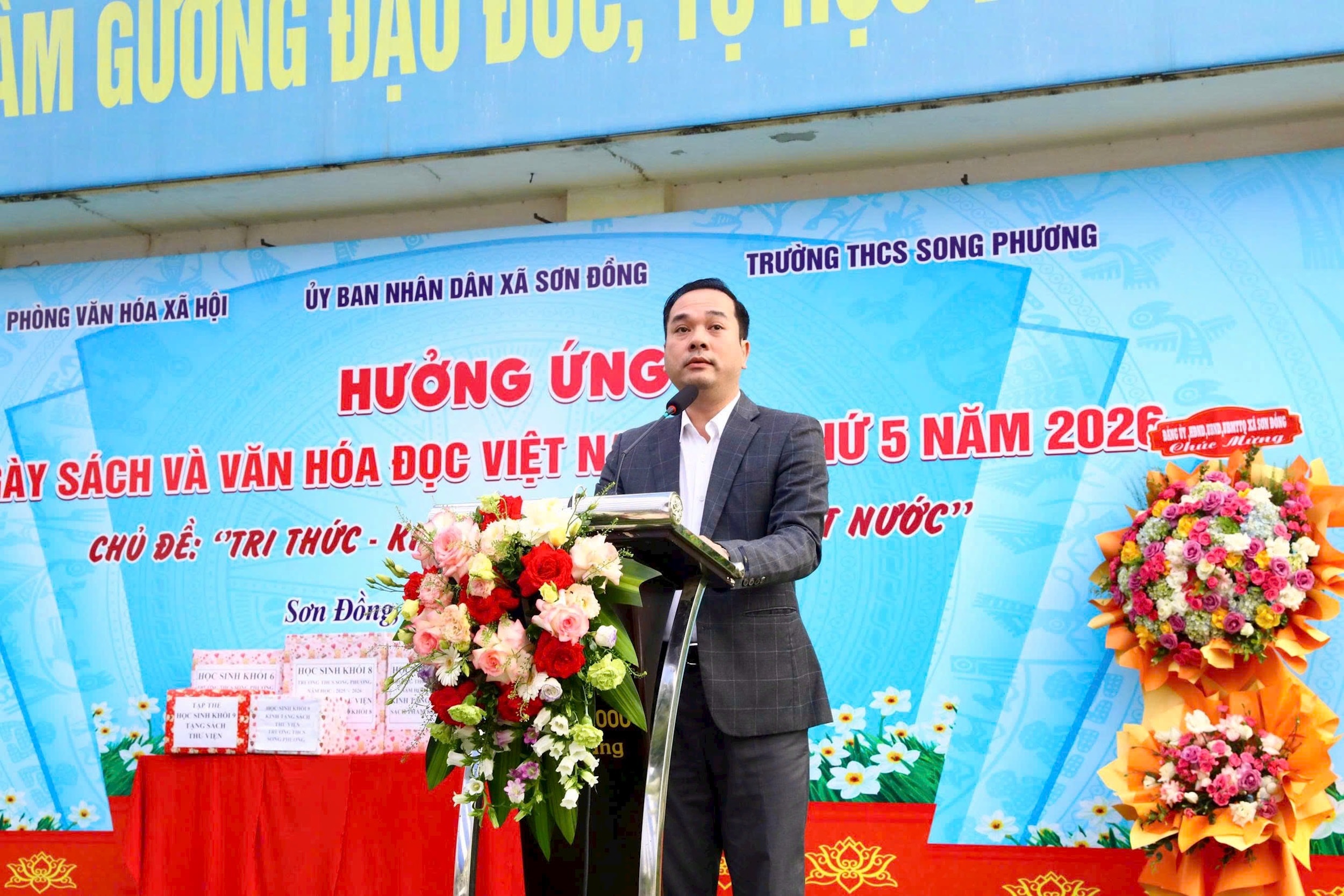 Phát biểu khai mạc, Phó Chủ tịch UBND xã Sơn Đồng Nguyễn Duy Cương nhấn mạnh, sách có vai trò đặc biệt quan trọng trong đời sống xã hội, là kết tinh tri thức của nhân loại, góp phần hình thành nhân cách và phát triển toàn diện con người. Trong bối cảnh chuyển đổi số và bùng nổ thông tin hiện nay, việc duy trì và phát triển văn hóa đọc càng trở nên cần thiết, giúp định hướng nhận thức, bồi dưỡng tri thức và xây dựng xã hội học tập.